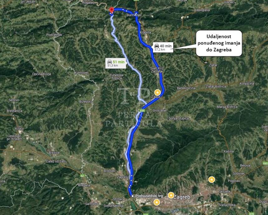 Za naglasiti je da se ono nalazi u blizini naplatnih kućica "Đurmanec" autoputa Zagreb-Maribor kao i to da je udaljeno od Pregrade cca 10 min i od Rogaške Slatine cca 15 min.