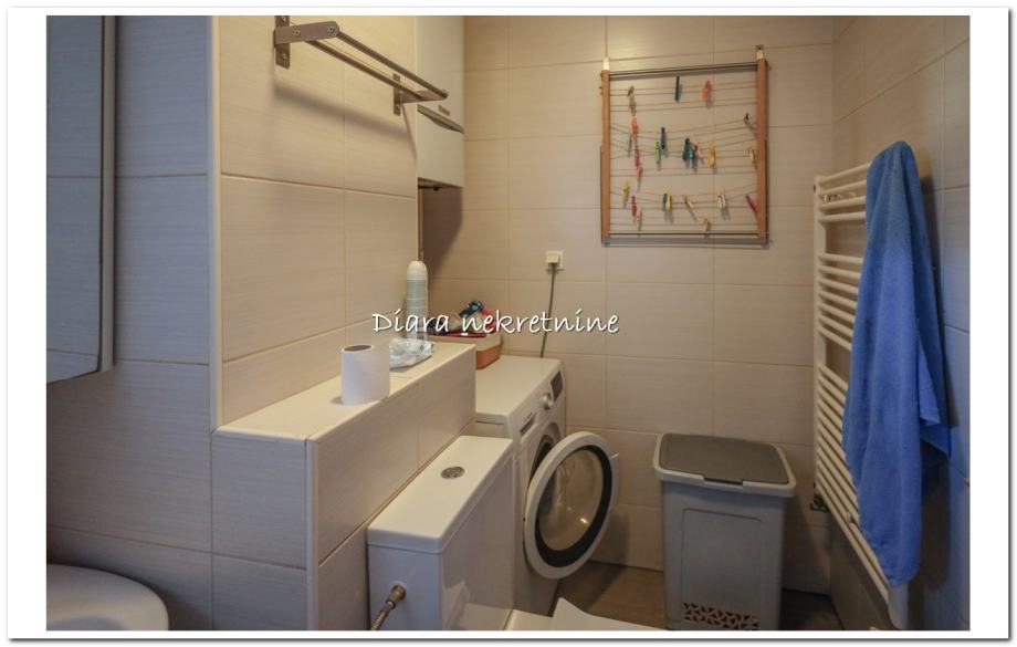 Stan je površine 52,36 m2, a sastoji se od hodnika, dnevnog boravka s kuhinjom i blagovaonicom, te ostavom u jednom prostoru, dvije spavaće sobe, prostrane kupaonice s kadom, te lijepe loggie.