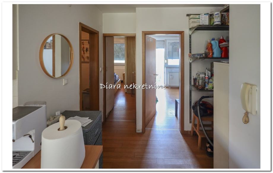 Podovi u stanu su obloženi masivnim parketom od bambusa., a stan ima vrlo kvalitetna protuprovalna vrata.