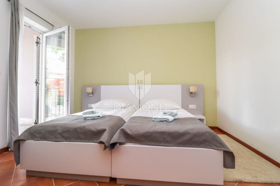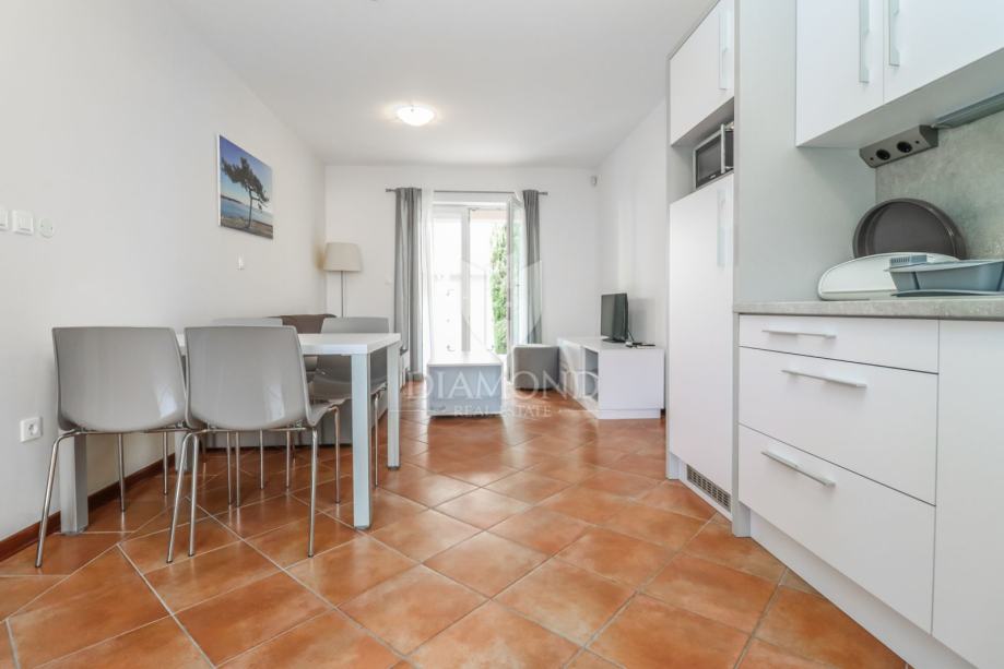 Prekrasan apartman nalazi se u prizemlju kuće, a sastoji se od dvije spavaće sobe s izlazom na terasu, dnevnog boravka s blagovaonicom i izlazom na terasu, kuhinje i kupaonice, što čini ukupnu kvadraturu apartmana od 70 m2. Apartmanu pripada i mali dio vrta. Dodatno, apartman nudi vlastito parkirno mjesto.
