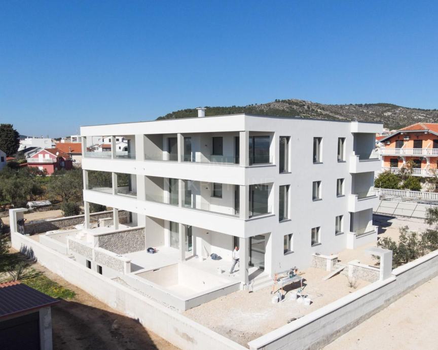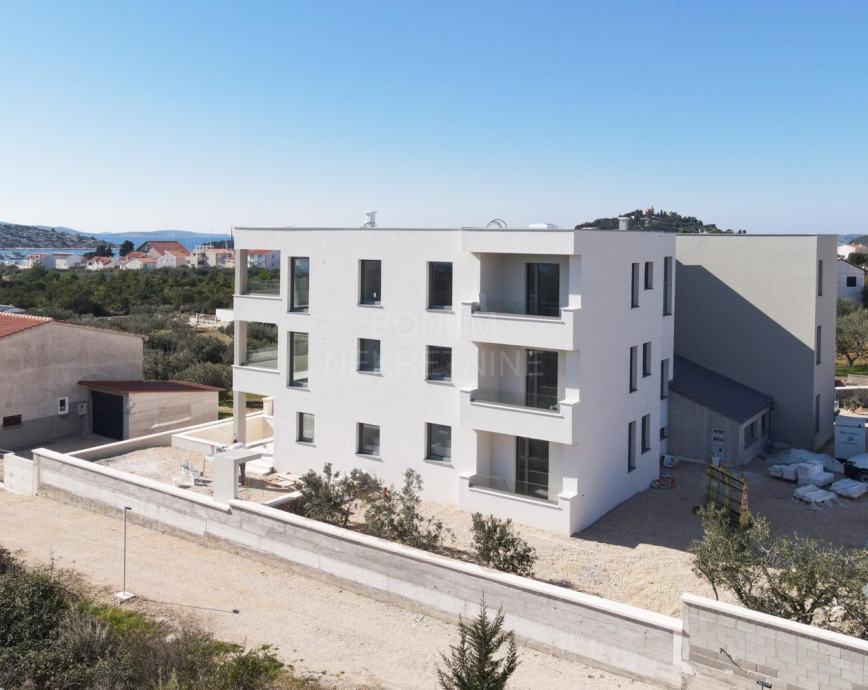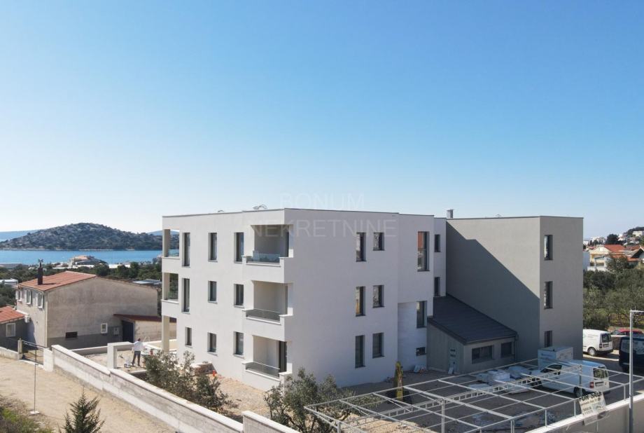Prodaje se apartman u apartmanskoj zgradi, Tribunj. Zgrada je ravnih linija, moderna, kvalitetno građena i opremljena. Odlično je osmišljena. Apartmanima u prizemlju pripada i dio okućnice i bazen. Zgrada se nalazi na mirnoj lokaciji, te se s gornjih etaža pruža se predivan pogled na more. U blizini je i lijepo uređena plaža te centar mjesta koji je udaljen svega na 10-tak min. hoda.