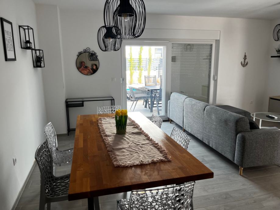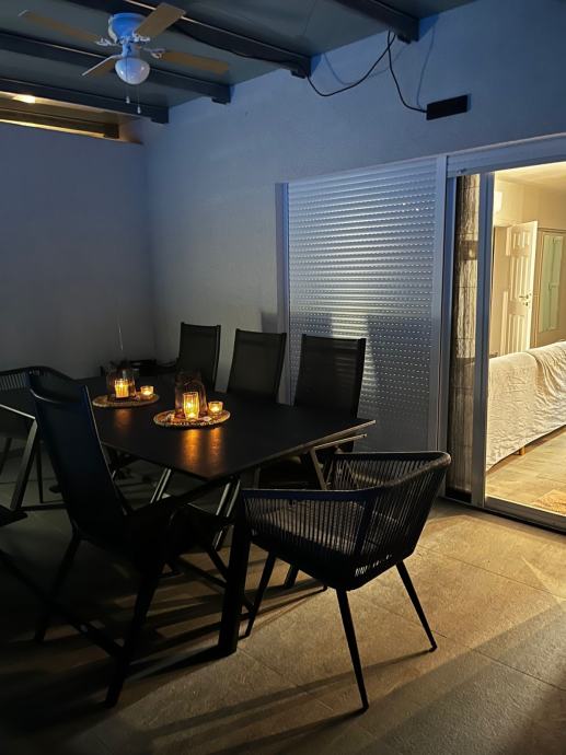 Stan ima svoj ulaz, izlaz na uređenu privatnu terasu sa vrtom u kojem je smješten bazen.