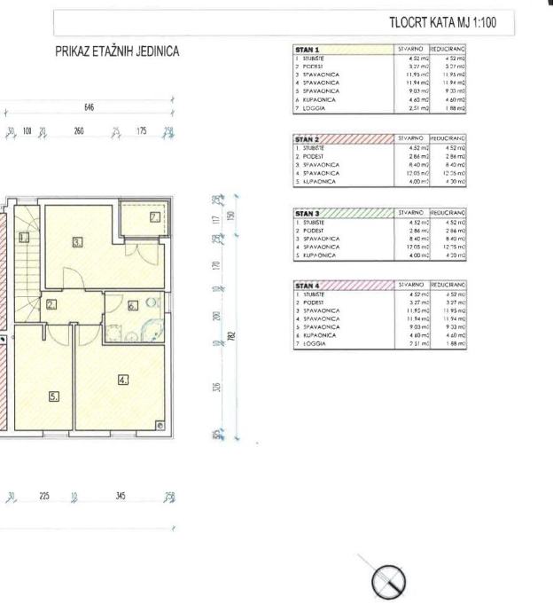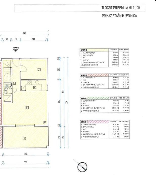 Dio prizemlja i dio kata (prizemlje: ulazni prostor, spavaonica, wc, kuhinja, dn. boravak / blagovanje, kat: stubište, podest, tri spavaće sobe, kupaonica, lođa) UKUPNE KORISNE POVRŠINE 94,21 m2, sa SPOREDNIM DIJELOM (parterno uređenje i loggia) UKUPNE KORISNE POVRŠINE 20,02 m2 i sa PRIPADKOM - dio prizemlja (koji se sastoji od parkirališta PS1 i vrta VS1) UKUPNE KORISNE POVRŠINE 93,07 m2.
