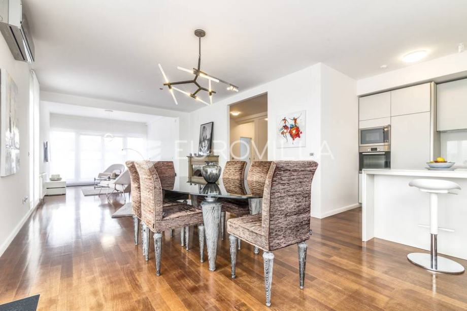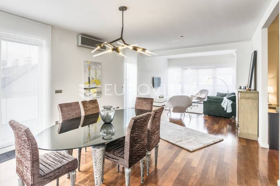 A beautiful fully furnished penthouse for rent in an urban villa on Zelengaj.The apartment is spread over the entire floor, consisting of a large open space (living room, dining room and kitchen), and three bedrooms with two bathrooms. On the ground floor there is a double garage for two cars.The...