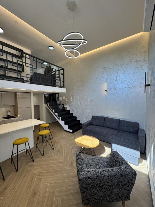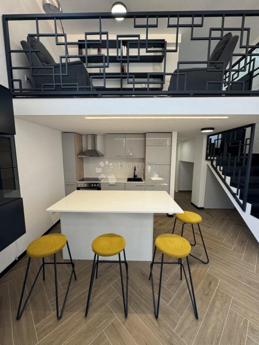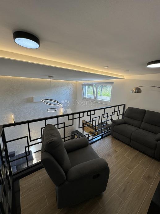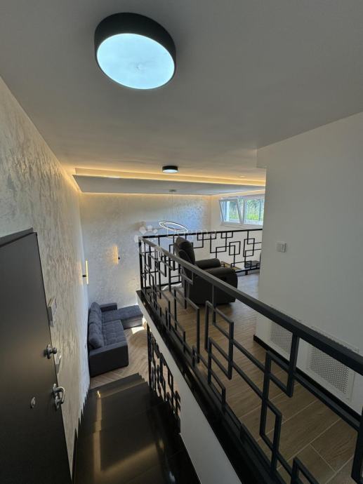 Gornja etaža pruža dodatnu dozu ugodnosti i intime. Tu se nalazi još jedan dnevni boravak koji je osmišljen kao kutak za odmor i čitanje knjiga, dodatna kupaonica te još jedna komforna spavaća soba. Stan se prodaje potpuno namješten s pažljivo biranim namještajem, što kupcu omogućuje trenutačno useljenje bez dodatnih ulaganja.