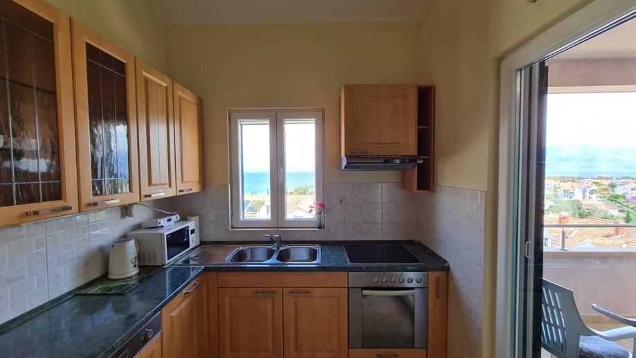 Stan se nalazi u zgradi sa šest stanova. Na prvoj etaži nalazi se jedna spavaća soba, dnevni boravak s kuhinjom i blagovaonicom, kupaonica, sprema te dva balkona s pogledom na more. Na drugoj etaži nalaze se dvije spavaće sobe, kupaonica te balkon s pogledom na more. Stan je u potpunosti namješten te se kao takav i prodaje. Svaka soba ima klimu.