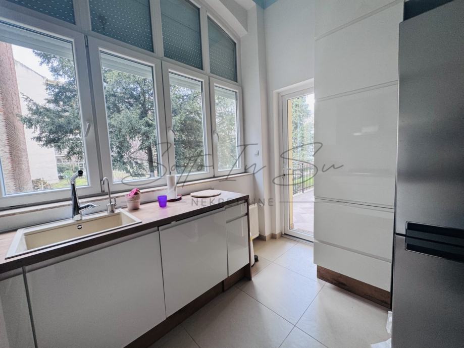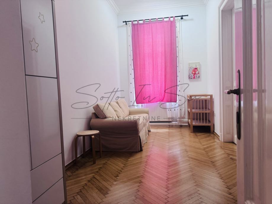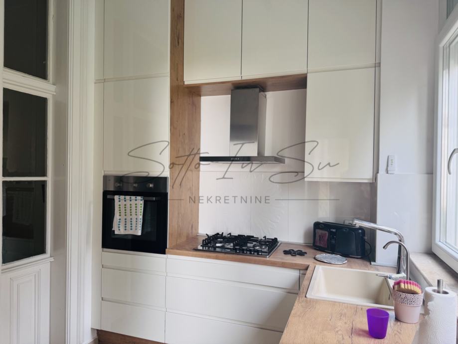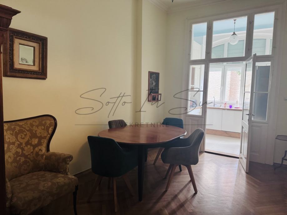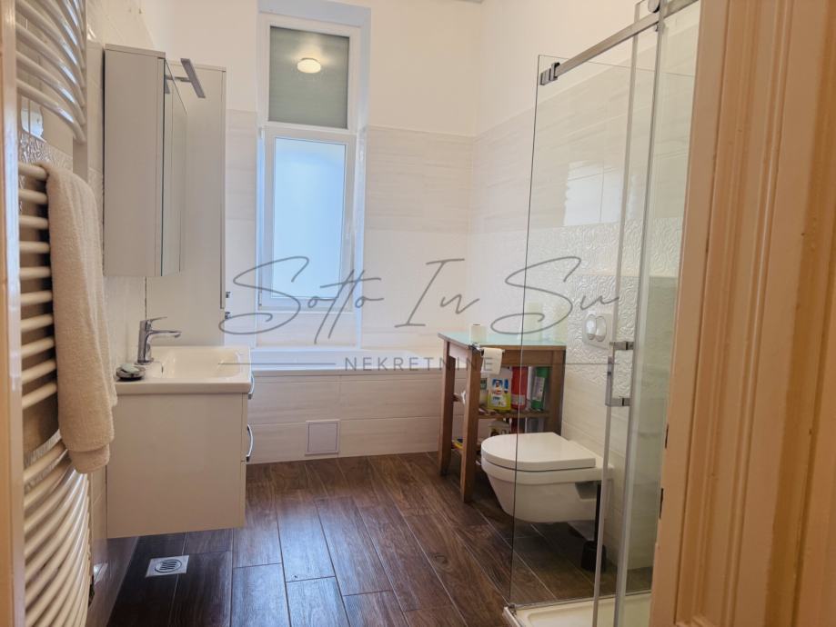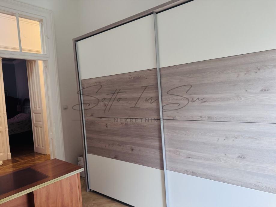 Iznajmljuje se prekrasan i svijetao građanski stan u visokom prizemlju stambene zgrade u centru. Nekretnina se sastoji od dugačkog hodnika, dvije spavaće sobe, radne sobe i ostave, jednog toaleta, kupaonice sa toaletom u kojoj se nalazi kada i tuš kabina, blagavaone i kuhinje i dnevnog boravka, te ostave, a sve ukupne površine 114,73m2. Stan je lijepo i ukusno adaptiran kombinacijom modernog i klasičnog namještaja. Zbog svoje istok-zapad orjentacije stan je pun svijetla, čemu pridonosi i prekrasna terasa sa dvorišne strane zgrade na koju se izlazi iz kuhinje i iz radne sobe. Stan je opremljen svim aparatima potrebnim za normalno funkcioniranje i svim posuđem, te perilicom i sušilicom, grijanje u stanu je centralno plinsko etažno. Nekretnina je u zoni tramvaja, u blizini su bonica, škole, HNK, Trg bana Jelačića je na 10min. hoda, Glavni kolodvor, crkva itd.. Najam stana je na minimalno godinu dana uz obavezan potpis ugovora o najmu, pri kojem se plaća depozit u visini jedne mjesečne najamnine. Cijena najma ne uključuje režijske troškove. Za više detalja o nekretnini ili razgledavanje molimo kontaktirajte na: 00385995362019 ili na E-mail; info@sottoinsu.hr