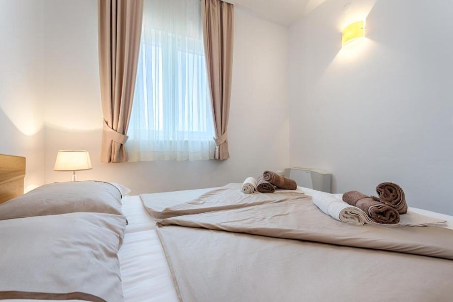 Hotel raspolaže sa 48 ležajeva + 12 pomoćnih smještenih u 6 hotelskih apartmana (family room 2+2), 6 dvokrevetnih soba (2+2) i 6 soba (2+1).