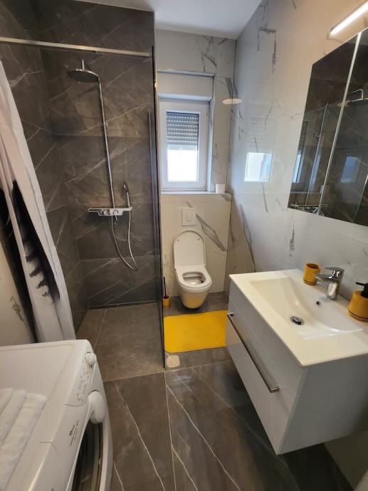 We mediate the rental of a brand new one-room apartment located in a new building near Trogir, district Mastrinka, Čiovo. The apartment has 50m2, one bedroom, bathroom with underfloor heating, kitchen with dining room and living room and a beautiful balcony with an open view of the sea. The apartment is full of light and warm. The apartment is available for rent from October 1. It has its own secured parking place! The price is €800 per month. CONTACT: 0915616295 (ANDREA)
