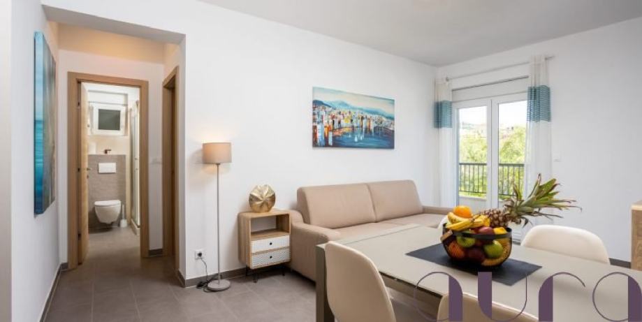 For rent a beautiful one-bedroom apartment located first row to the sea in Podstrana. Rent until summer 2026. Extremely quiet environment, right next to the beach and the promenade by the sea. Has a secured parking space.