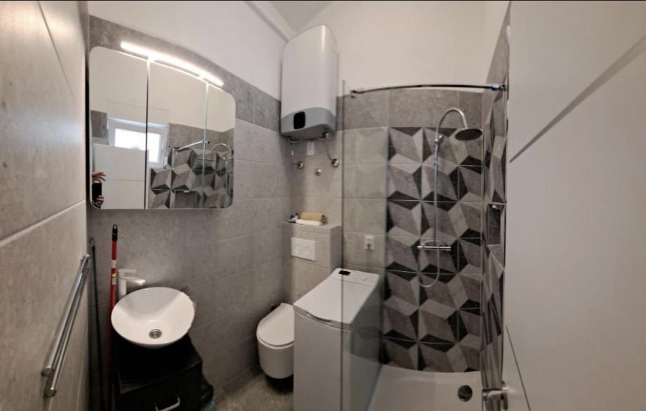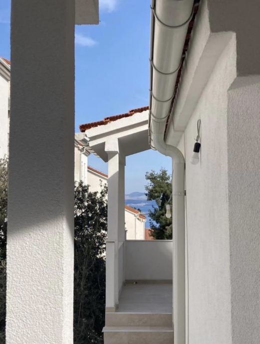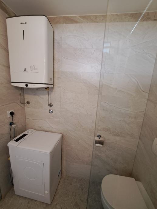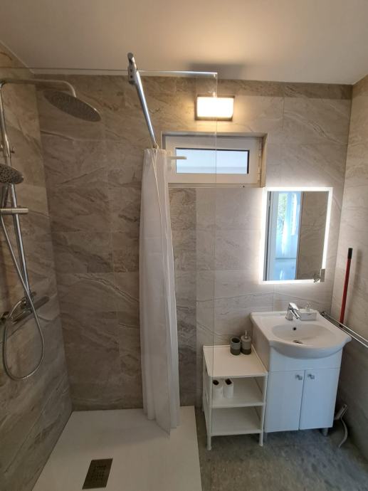 One apartment is located on the first floor of the building next to the Nečujam pine forest. It covers 32 m2 of interior space + 7 m2 of covered terrace, with a separate entrance, (but connected to the lower apartment) with an excellent layout, newly renovated and excellently and newly furnished. It consists of one bedroom with approximately 10 m2, a living room with a kitchen of 16 m2, a bathroom of 3.6 m2 and an entrance hall of 2.2 m2. All rooms have high ceilings. The apartment is sold with all furniture and equipment. The kitchen consists of a dishwasher, a stove with a glass ceramic hob, hood and oven and a refrigerator with a freezer. Everything is built of the highest quality materials with top-quality porcelain polished tiles and a stainless steel railing. There is lighting and ventilation in the bedroom and on the terrace. The bathroom is equipped with the most modern equipment, a shallow water heater, a modern cistern and toilet, and a narrow washing machine.