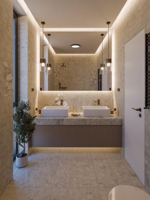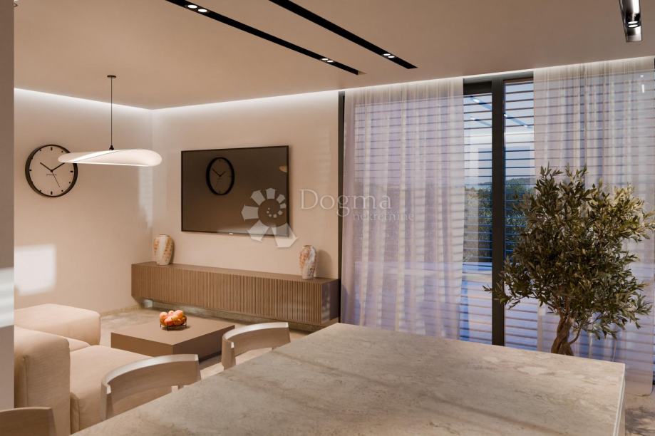 Posebnu vrijednost ovoj nekretnini daje prostrana terasa s privatnim bazenom, savršena za uživanje u mediteranskom ambijentu, zalascima sunca i otvorenom pogledu na more. Zgrada će biti izvedena prema najvišim standardima gradnje, uz korištenje kvalitetnih materijala i suvremene opreme, osiguravajući budućim vlasnicima dugoročnu vrijednost i maksimalnu udobnost.