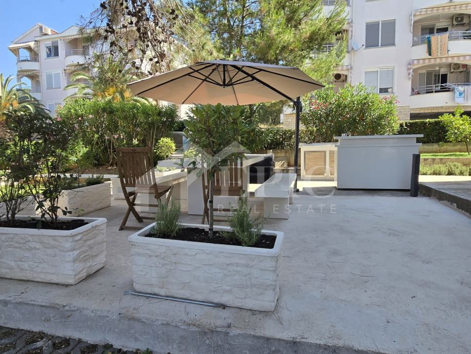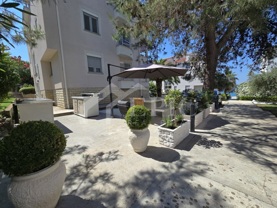 Posebna prednost ovog apartmana je mirna lokacija u blizini prirode, s neposrednom blizinom mora, udaljenost plaže na svega 70 metara, i mogućnošću veza za barku, što dodatno doprinosi njegovoj atraktivnosti. Pogled na more i sunčana orijentacija čine ovaj apartman izuzetno privlačnom ponudom za one koji traže mjesto za odmor ili sigurno ulaganje.