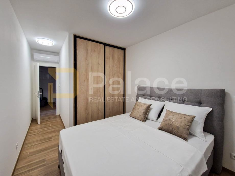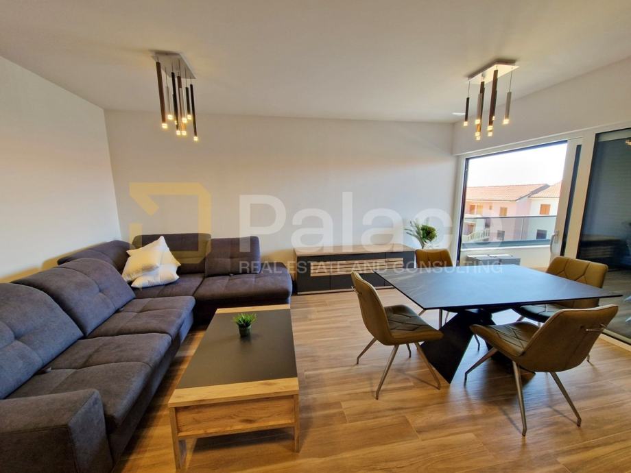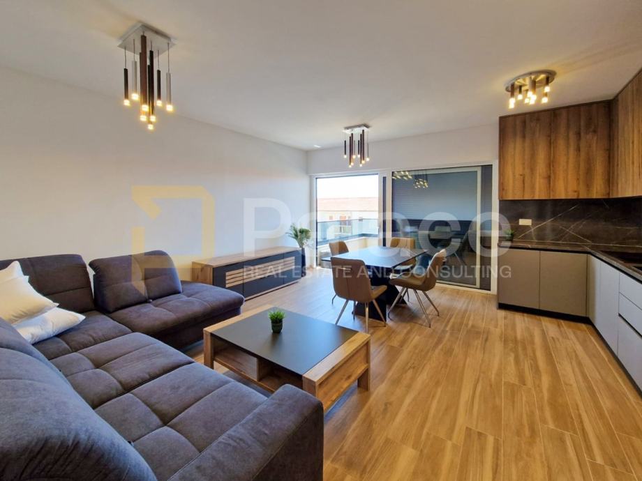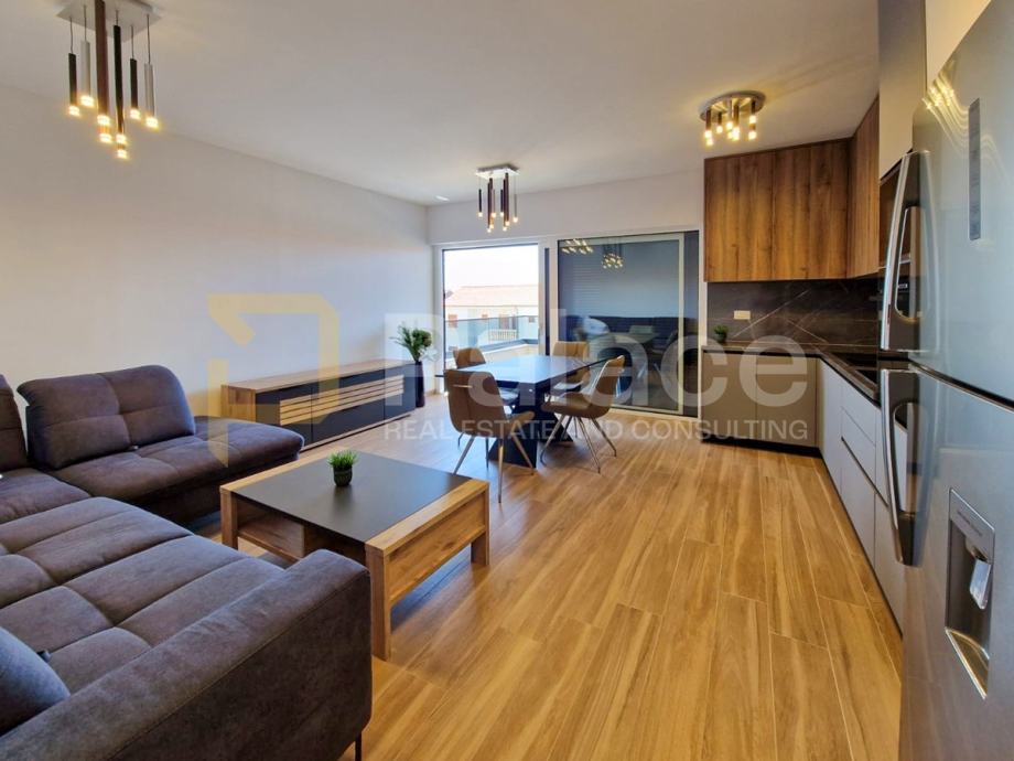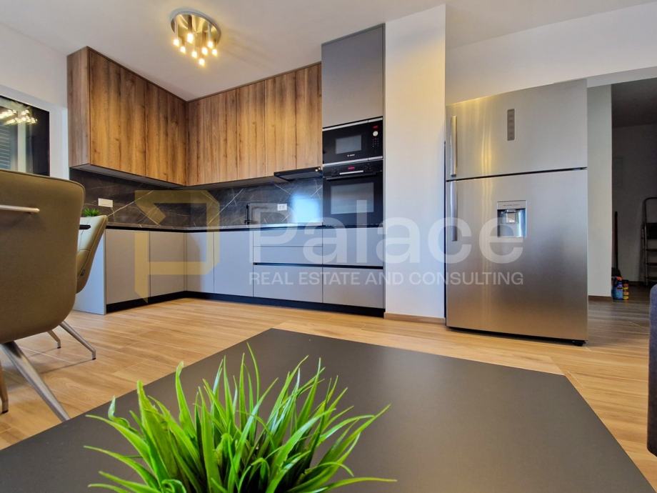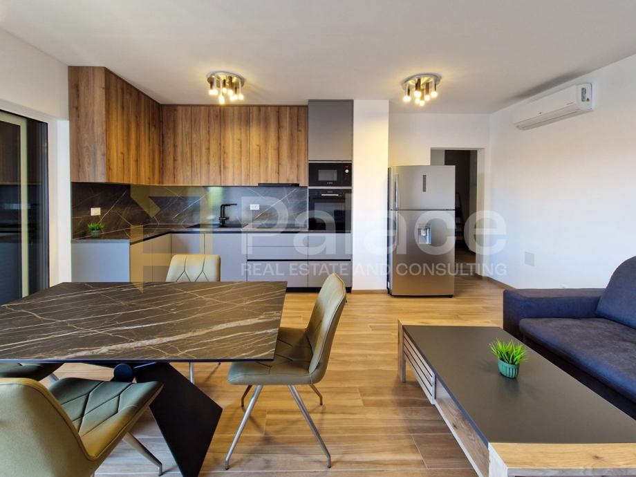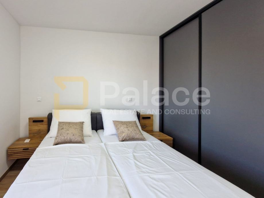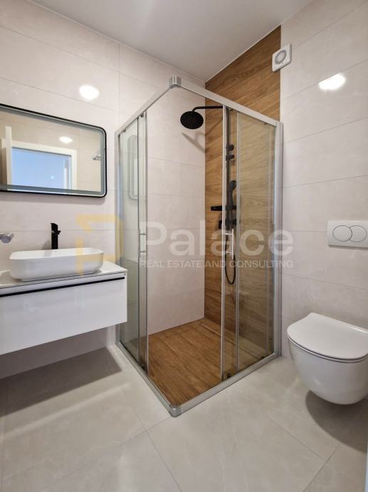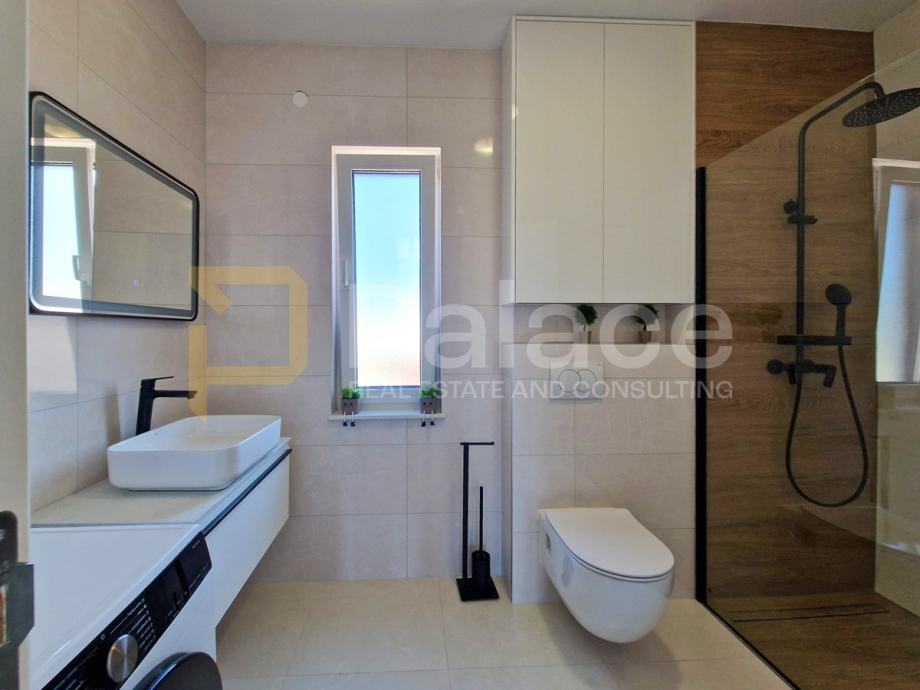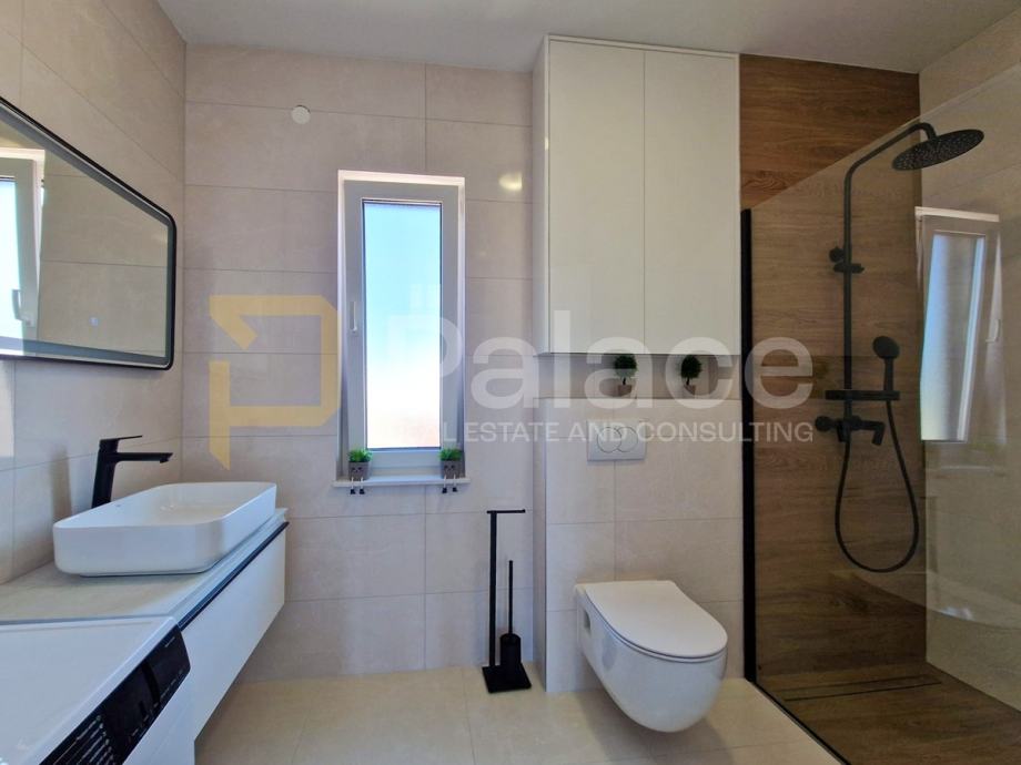 Stan je opremljen podnim grijanjem u svim prostorijama i klima uređajima u svakoj sobi, što omogućava idealnu temperaturu tijekom cijele godine. Antracit stolarija izvana i bijela iznutra, električne rolete i komarnici dodatno doprinose kvaliteti stanovanja.