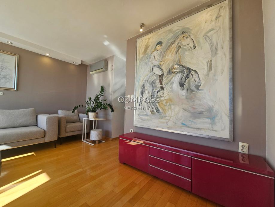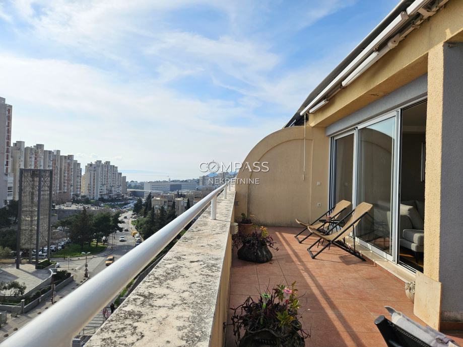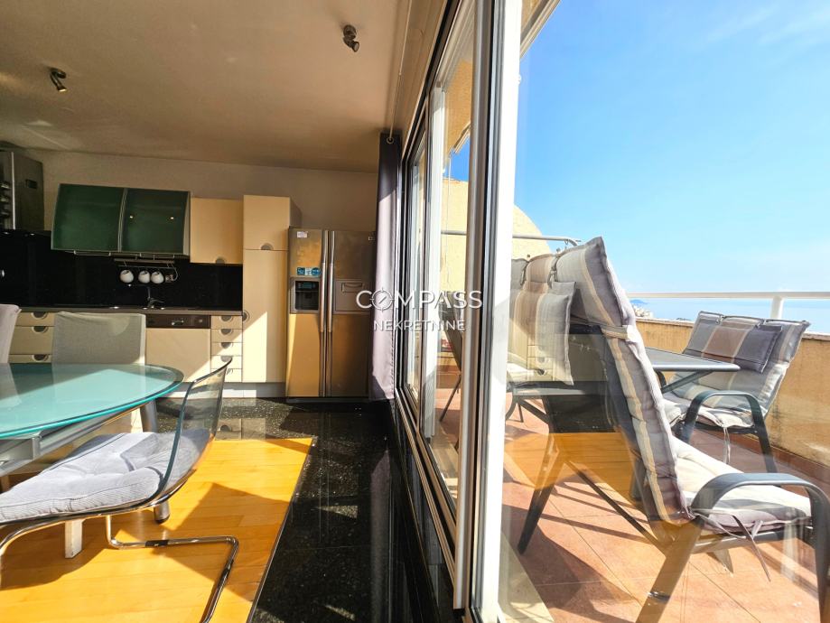 We are mediating the rental of a beautiful penthouse in a residential building in Žnjan. It covers 109 m2 and consists of a spacious hallway, two bedrooms with air conditioners, two bathrooms, a storage room, and a beautiful open space living area; kitchen, dining room, and living room which extend to a spacious terrace with a unique open view of the sea and islands. The apartment is located near beautiful beaches and all necessary amenities for living. It is ideal for Medical Faculty students, who are just a few minutes' walk away from the apartment. Contact us for more information via phone: + 385 91 607 56 27 or email: info@compass.hr