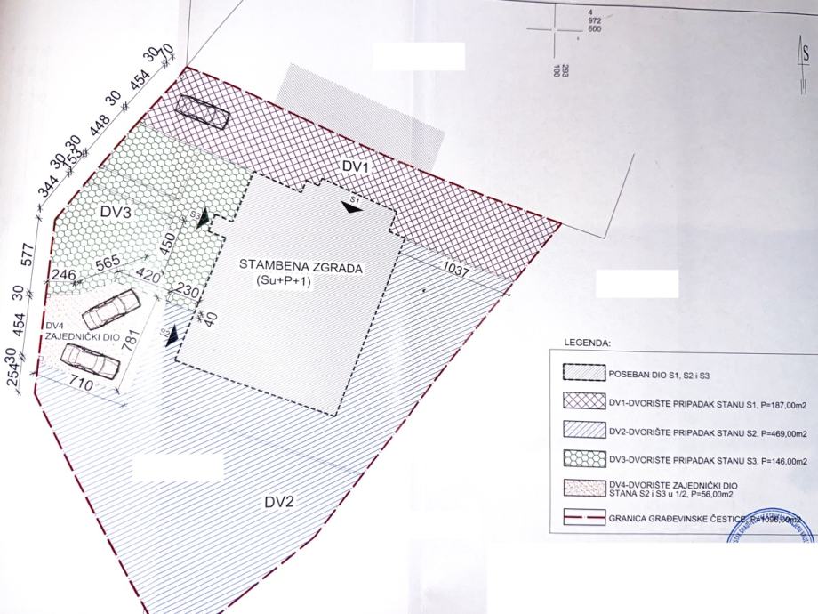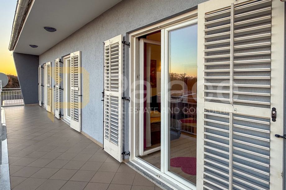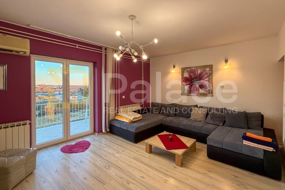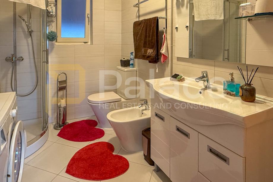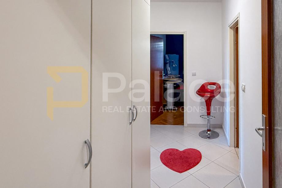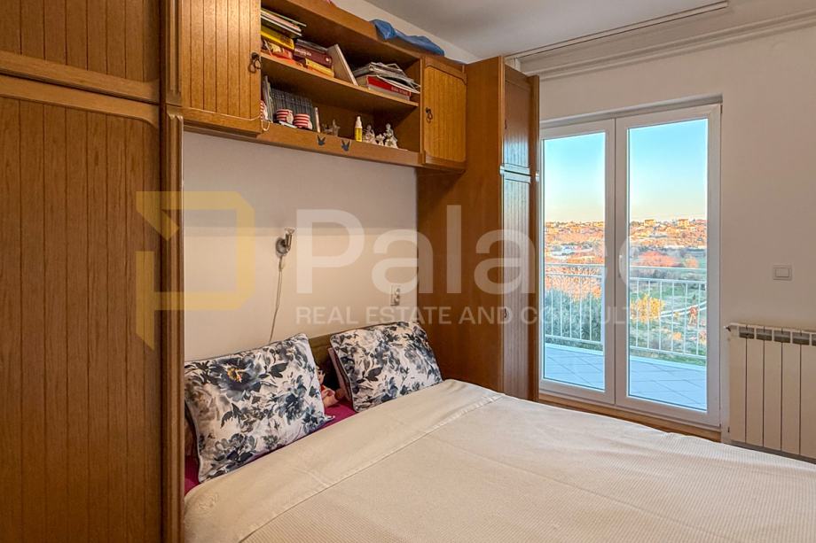 Stan se sastoji od 3 spavaće sobe, dnevnog boravka, kuhinje, i dvije terase. Dvije spavaće sobe i dnevni boravak imaju izlaz na veliku terasu. Stan također posjeduje veliki vlastiti vrt, vlastiti ulaz u dvorište te dva parkirna mjesta.