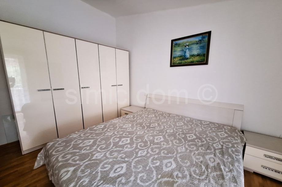 Posredujemo u prodaji vrlo prostranog i izvrsno opremljenog stana koji se smjestio tek nekoliko minuta šetnje od prekrasnih plaža ovog kraja. Stan se nalazi na drugom katu manje etažirane apartmanske kuće koja ima ukupno 3 odvojene jedinice. Podna površina stana je 94,4m2 te se sastoji od dvijespavaće sobe, dnevnog boravka, kuhinje, dvije kupaonice, tri hodnika i dviju loggia, od kojih ona južna pruža uistinu impresivan pogled na more i cijelo okolno područje. Po etažiranju, stanu pripada i garaža u suterenu čija je podna površina 31,2m2. Prostranog stana i niz modernih, funkcionalnih i estetski dojmljivih rješenja u opremanju i namještanju čine ovu nekretninu idealnom za posao najma, ali i za svakodnevni život zbog blizine svih sadržaja. Kuća se diči i pažljivo održavanom okućnicom čineći tako ovu priču u potpunosti zaokruženom cjelinom. Vlasništvo uredno.