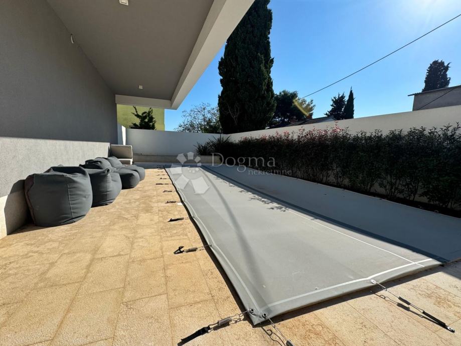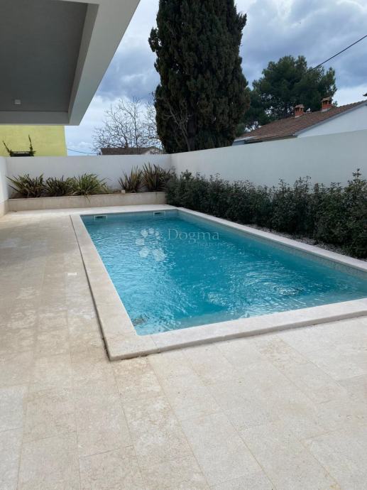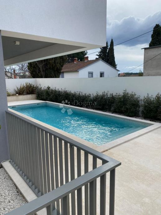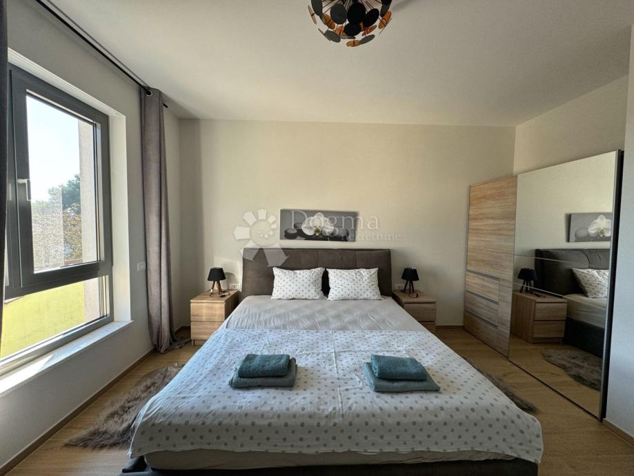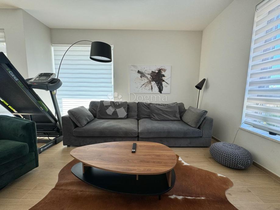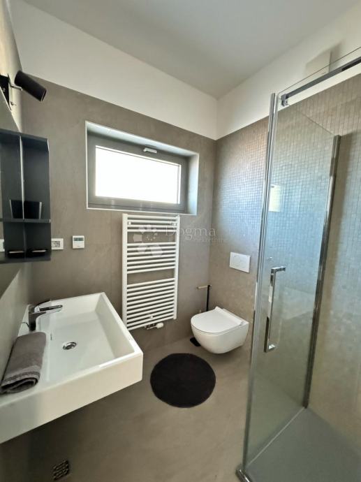 Stan je opremljen klima uređajima za hlađenje i podnim grijanjem, što osigurava ugodan boravak tijekom cijele godine. Na raspolaganju su i dva parkirna mjesta, smještena u zatvorenom prostoru s električnim portunom, a dodatna pogodnost je zajednički bazen dostupan stanarima.