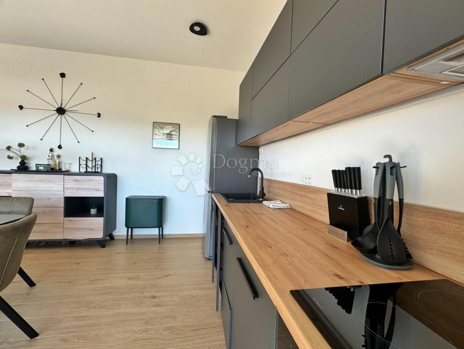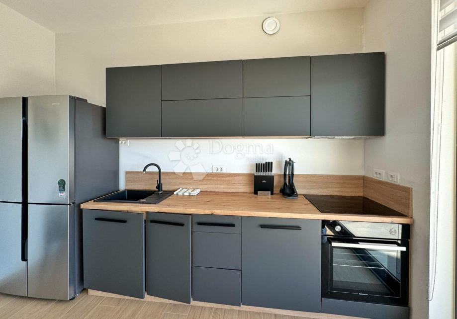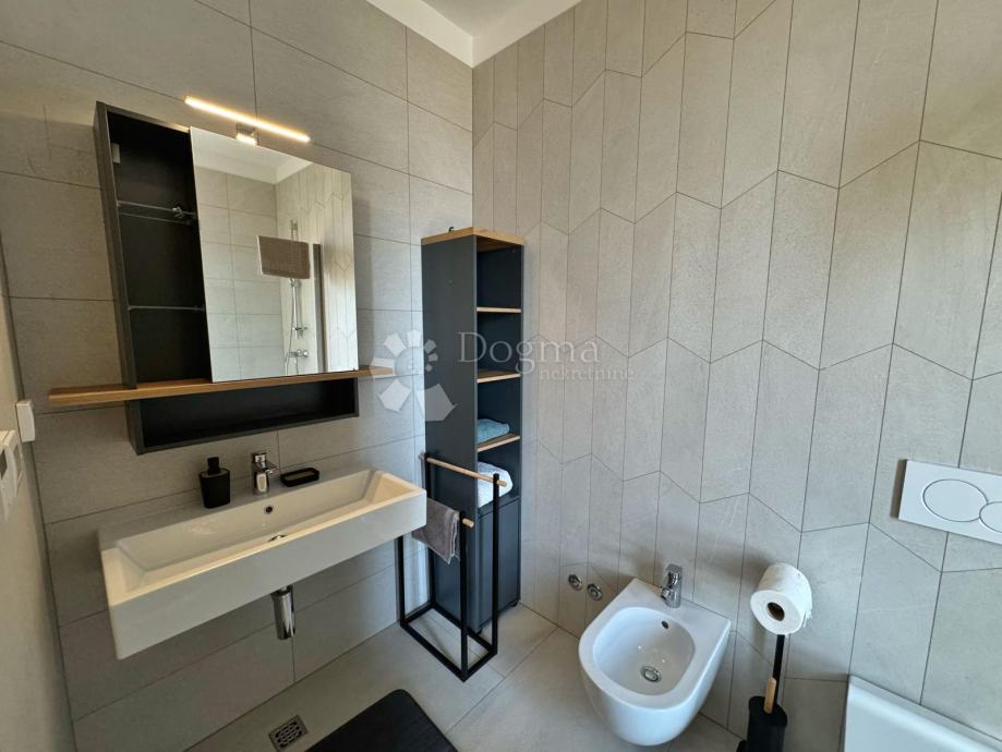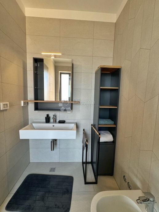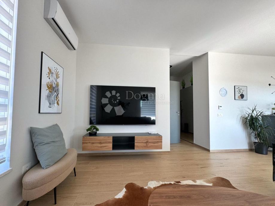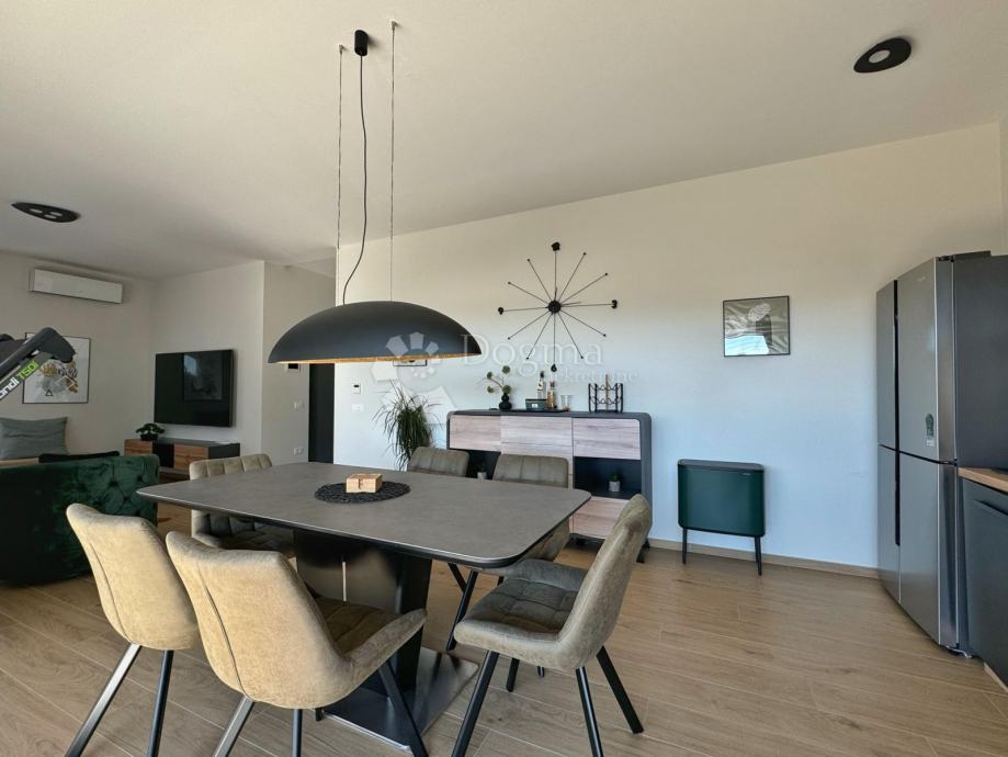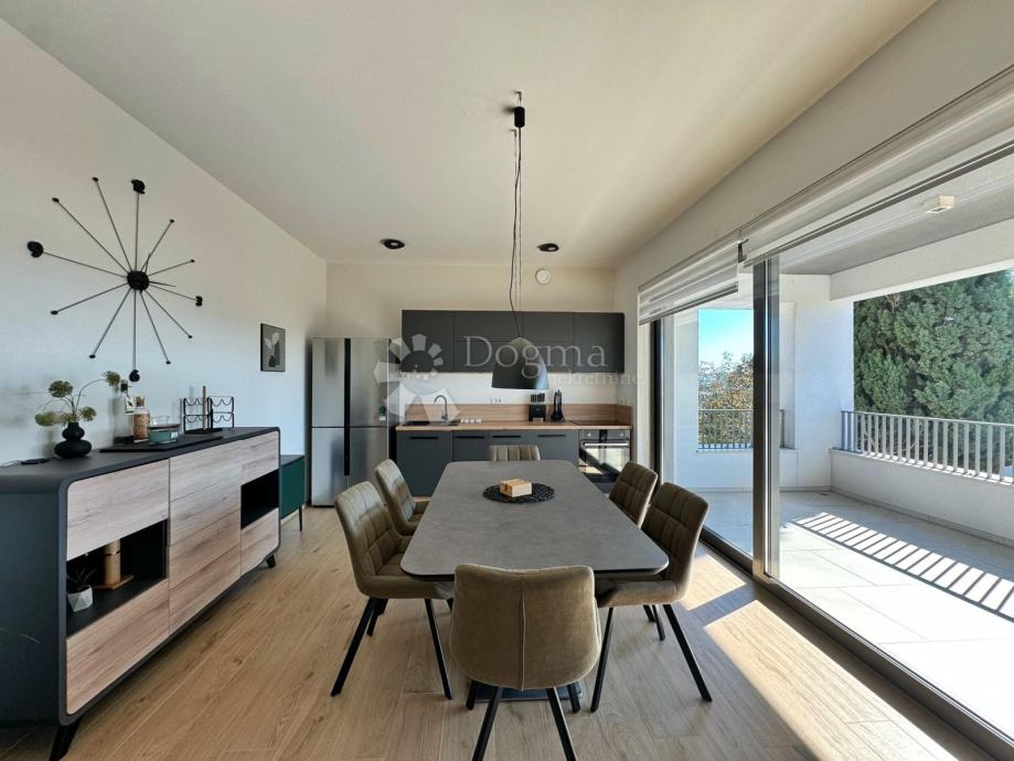 U stanu se nalazi dodatni WC i praktičan vešeraj, a središnji dio prostora čine prostrani dnevni boravak, moderna kuhinja i blagovaonica s izlazom na veliku terasu s prekrasnim pogledom na grad.