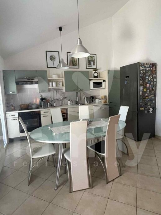 U centru Pule nalazi se ovaj prekrasan stan površine 78 m2 smješten na četvrtome katu, na mansardi. Atraktivna lokacija ovog stana dodatno doprinosi izboru iste. Komotna natkrivena lođa pruža mogućnost ugodnog boravka na njoj. Sastoji se od hodnika, dnevnog dijela sa kuhinjskim prostorom i blagovaonom, dvije spavaće sobe, predprostora, kupaonice i lođe. Sustav grijanja i hlađenja reguliran je putem unutarnje i vanjske jedinice klima uređaja, također uz to ima i centralno grijanje što dodatno doprinosi ugodnom boravku. U stanu je postavljen kvalitetan parket u dnevnom boravku, laminat u spavaćim sobama, a u preostalom dijelu stana keramika. Stolarija je izuzetno kvalitetna kombinirana, drvo iznutra dok je na vanjskom dijelu aluminijum. Nekretnina se prodaje sa većinom namještaja i useljiva je. Velika prednost ove nekretnine su i popratni sadržaji od pošte, banke, škole, vrtića, parka, igrališta, tržnice, plaže, gradskog bazena, trgovačkog centra, šetnice te blizine samog centra grada, ali i poznatih pulskih plaža.
