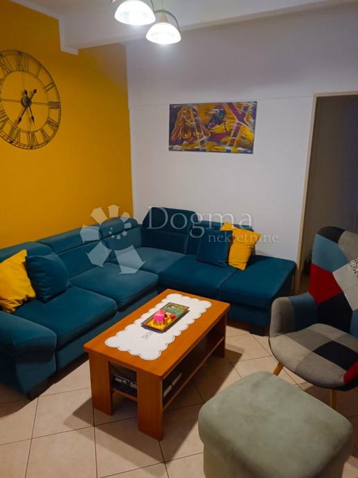 Interijer stana je ukrašen suvremenim namještajem i toplim detaljima, stvarajući ugodnu atmosferu. Kombinacija svijetlih boja i prirodnih materijala doprinosi osjećaju prostranosti i udobnosti.