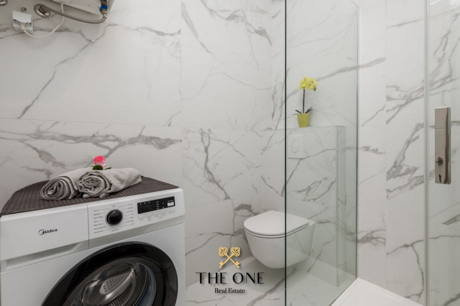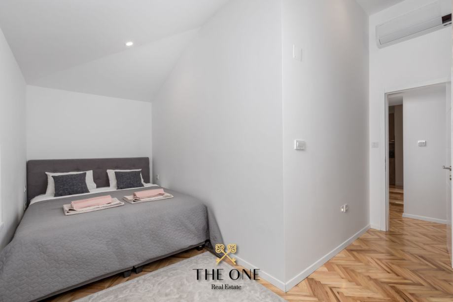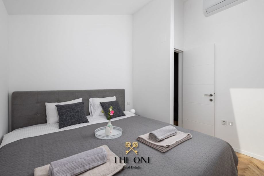 Nadalje, stan ima dvije spavaće sobe i kupaonicu. Renovacija stana je završena 2023. godine, pri čemu se posebna pažnja posvetila detaljima i kvaliteti izvedbe. Kupaonica je opremljena podnim grijanjem, što pruža udobnost za hladnije mjesece. Nova stolarija osigurava izvrsnu izolaciju i energetsku učinkovitost.