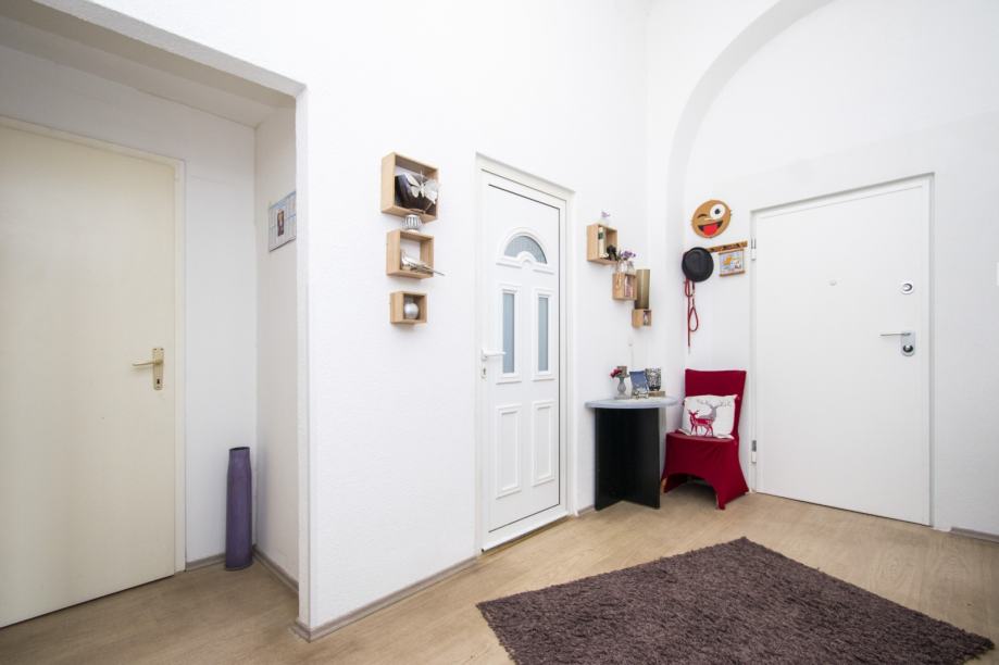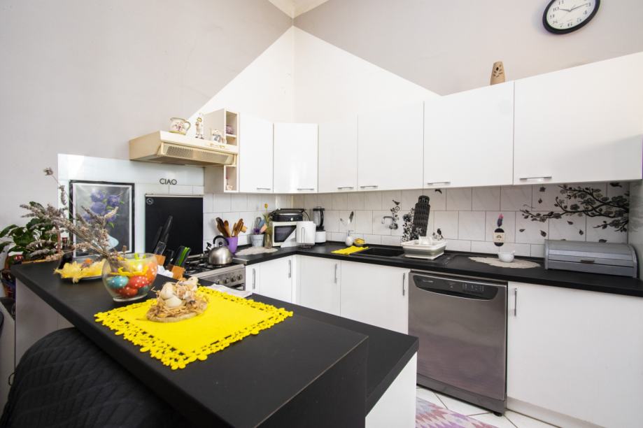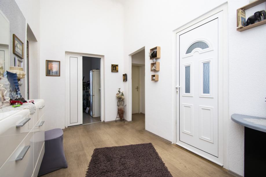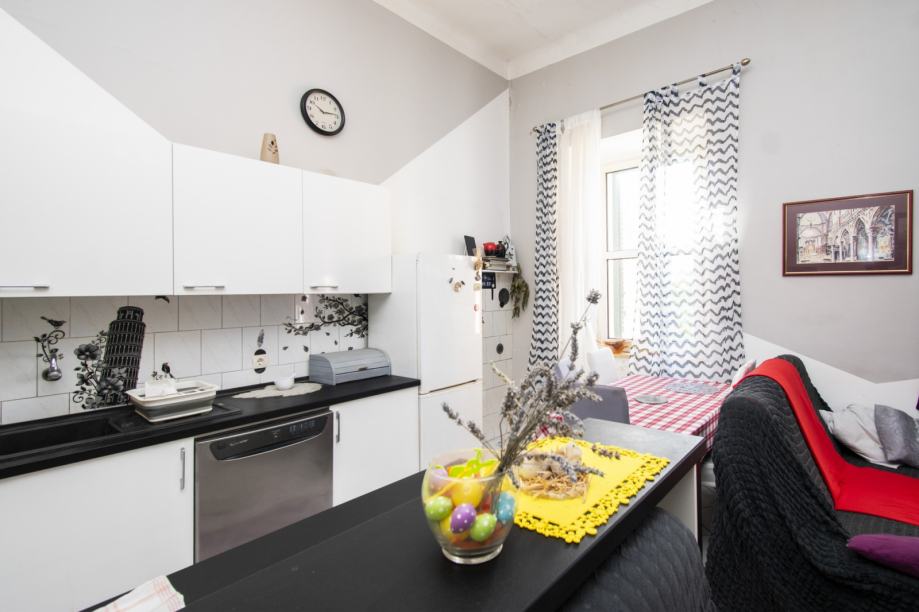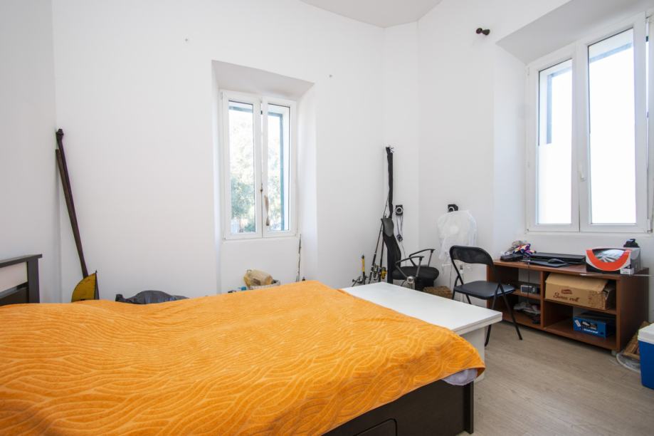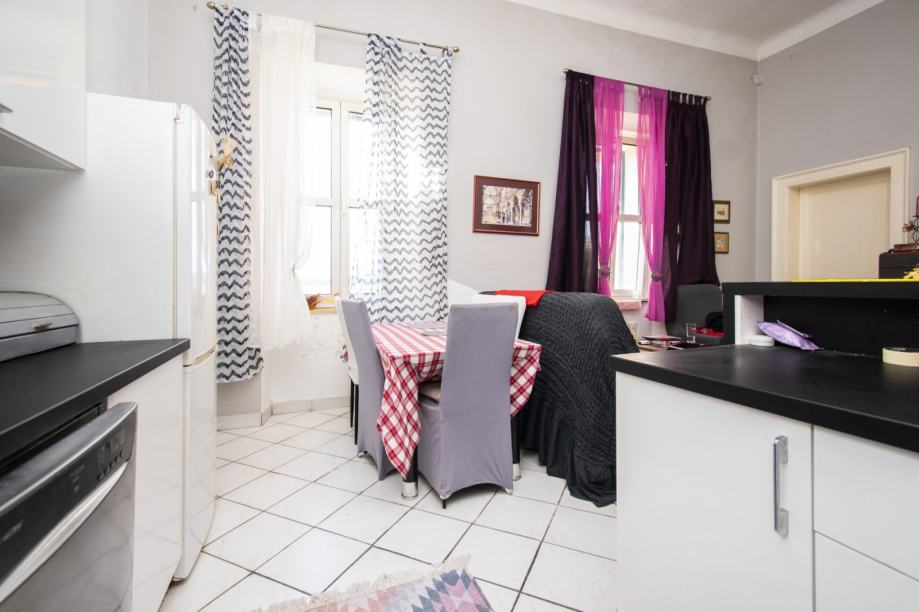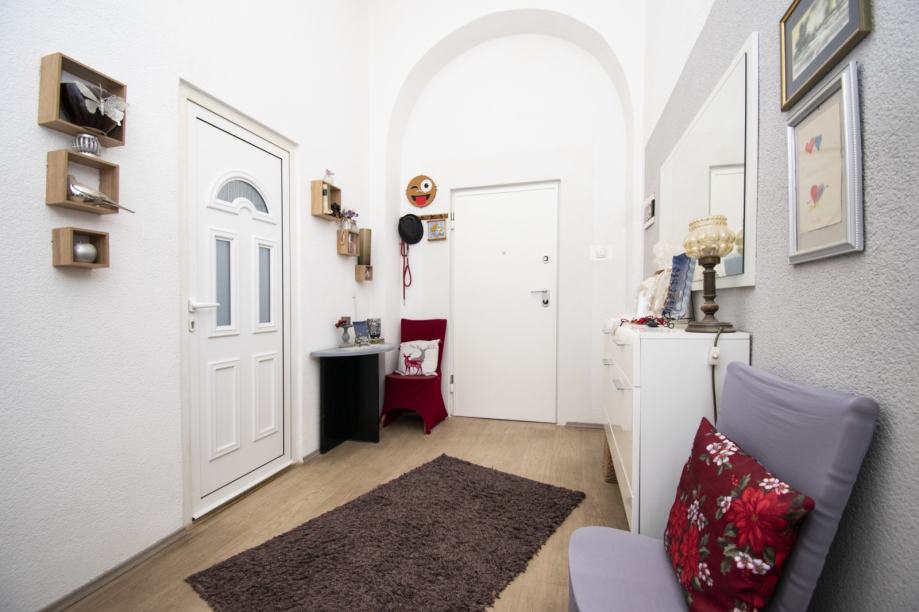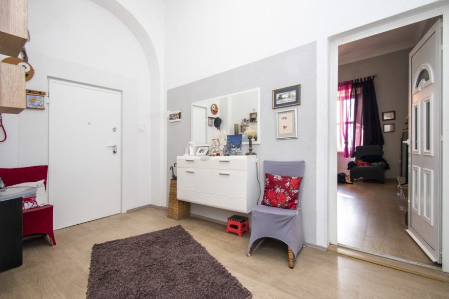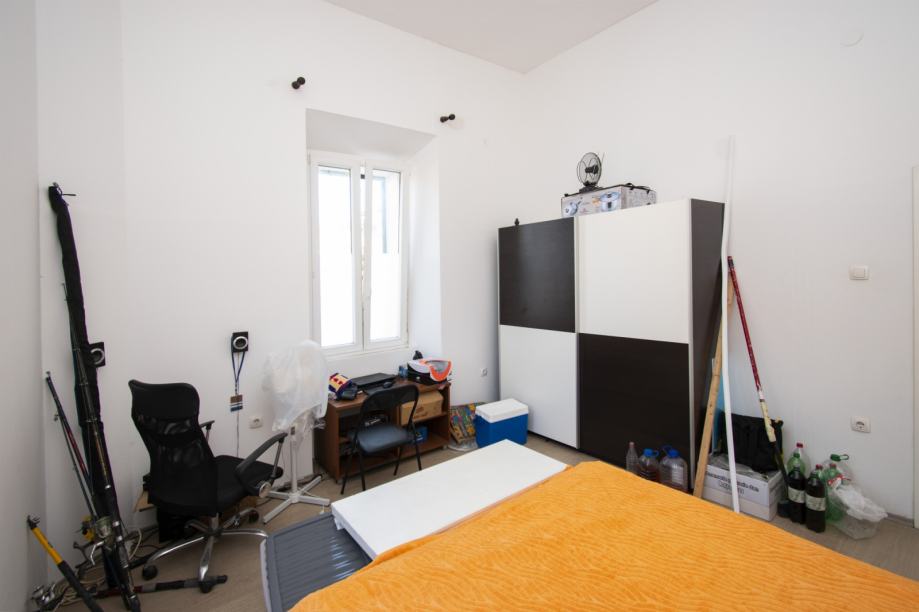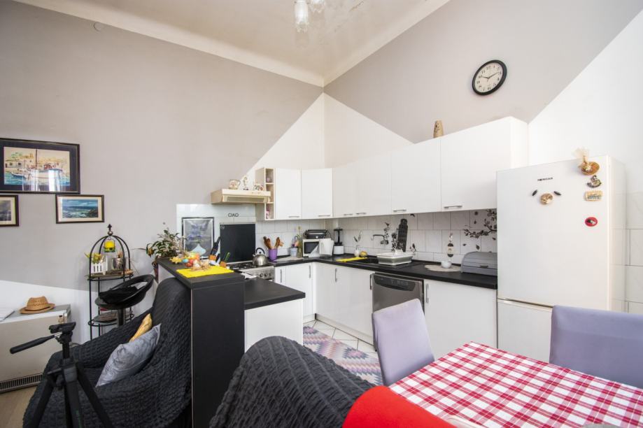 Stan je ukupne površine 101 m2 s viskom stropovima, 3 spavaće sobe, open space kuhinje s blagovaonicom i dnevnom sobom, hodnikom, ostavom i prekrasnom nenatkrivenom terasom s roštiljom s koje se pruža pogled na stari dio grada i na šibenski kanal.