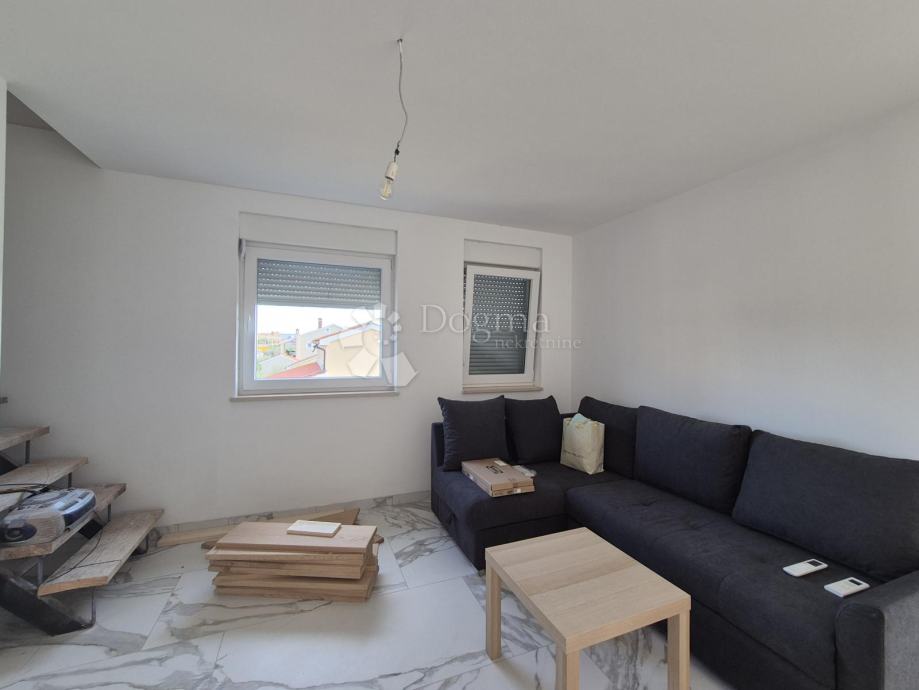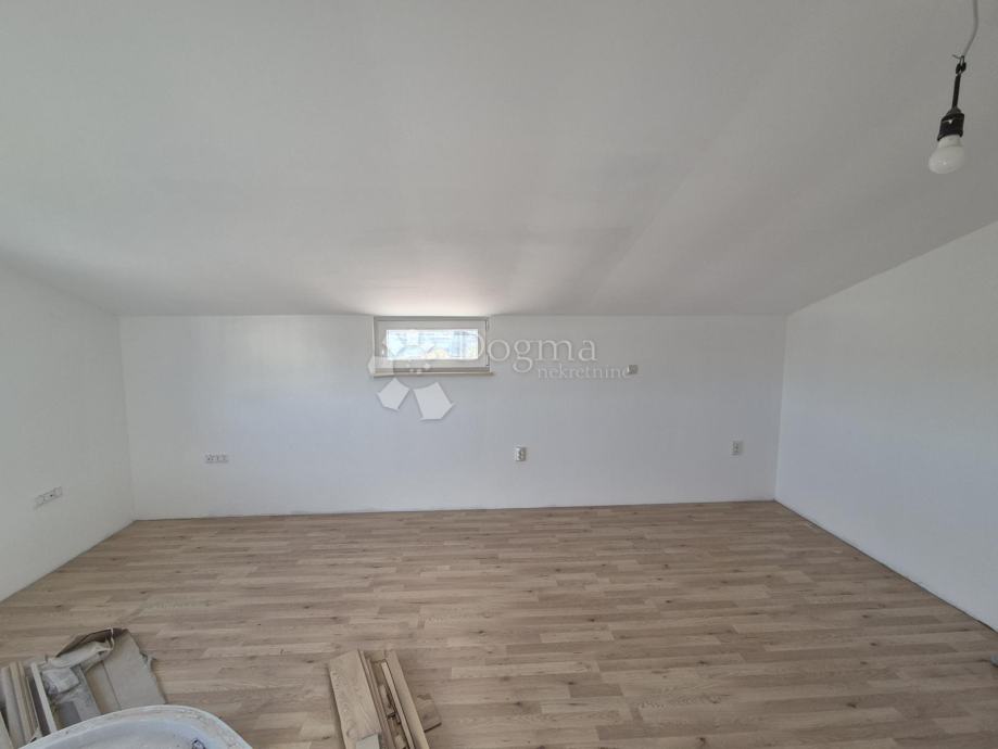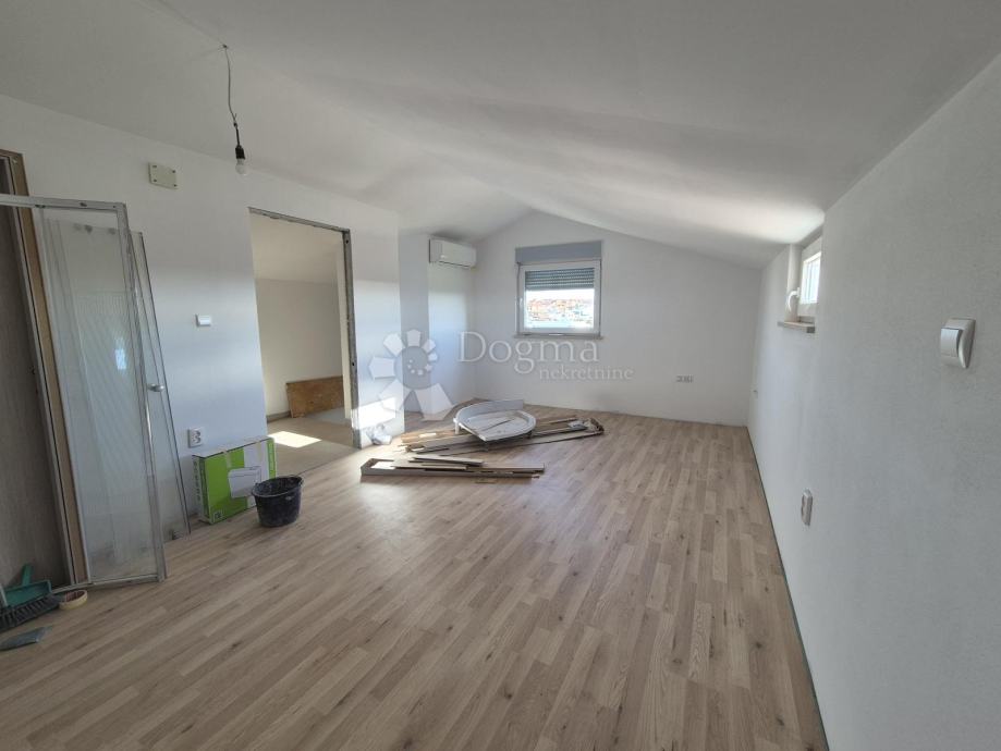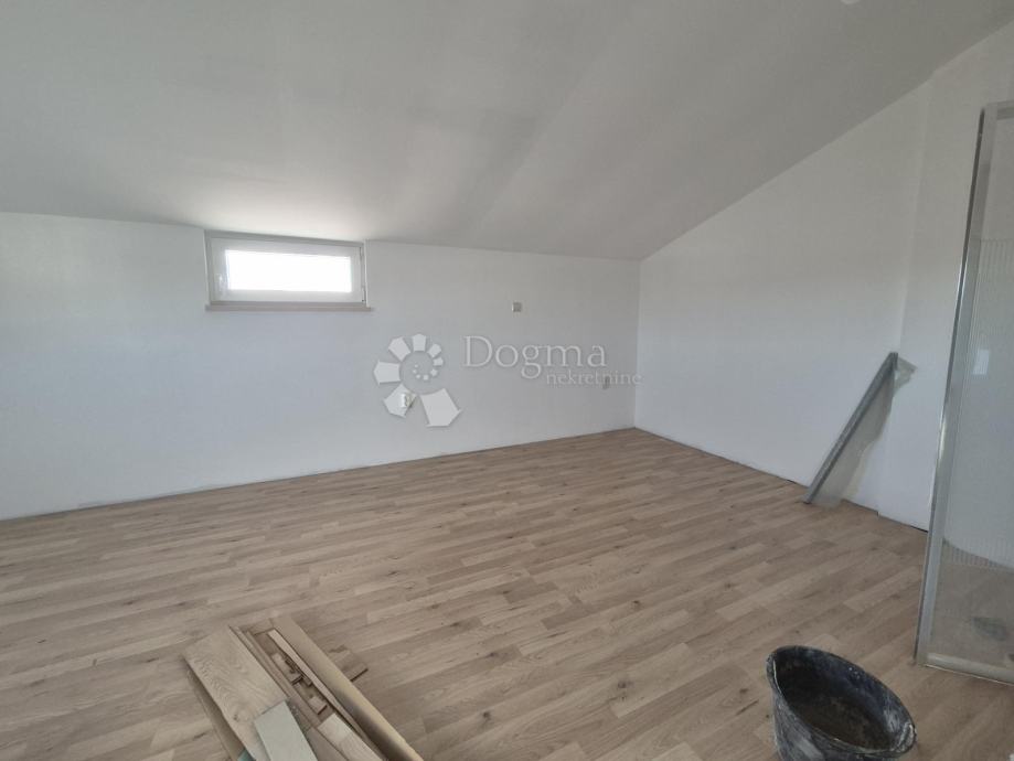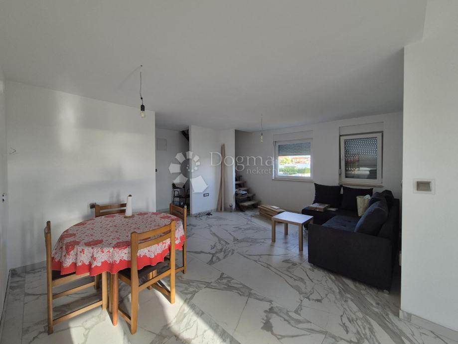 Stan se prostire na dvije etaže i ukupno 102m² , a na prvoj etaži nalaze se dvije spavaće sobe, prostrani open space dnevni boravak, kuhinja i blagovaona s izlazom na terasu s predivnim pogledom na more, kao i kupaonica. Druga etaža sastoji se od prostrane spavaće sobe i dodatne kupaonice. Stanu pripadaju i dva parkirna mjesta ispred zgrade, a tu je i manja drvarnica za pohranu.