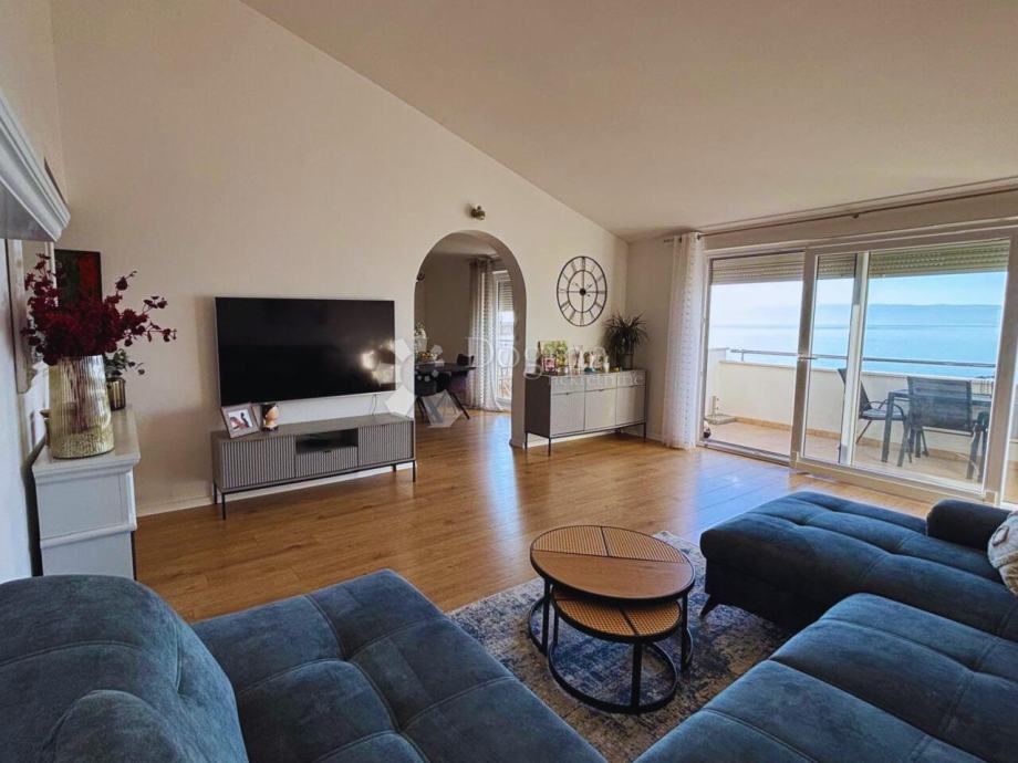 Prostran dnevni boravak s direktnim izlazom na terasu i pogledom na more, te opcijom za uređenje galerije – idealan dodatni kutak za rad, čitanje ili opuštanje.