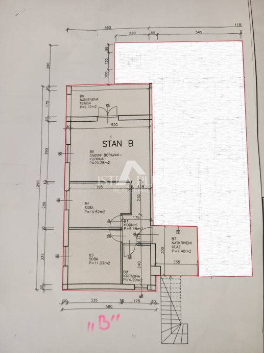 Površine je 60 m2 , sastoji se od ulaznog hodnika, kupatila, dvije spavaće sobe, dnevnim boravkom sa kuhinjom i blagovaonom, te natkrivenim balkonom.