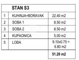 Prodaje se stan oznake S3 u prizemlju zgrade od 51,20 m2