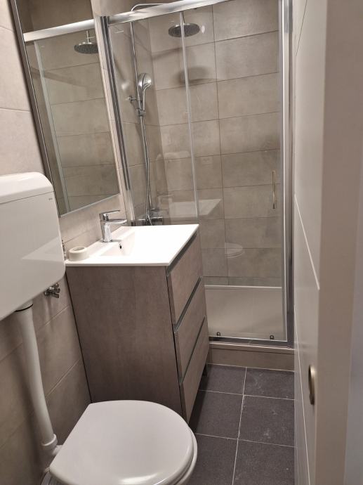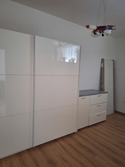 Stan je moderno uređen i potpuno adaptiran, s pažljivo biranim materijalima koji spajaju suvremeni stil i toplinu doma. Prostorni raspored maksimalno je iskorišten – dnevni boravak i kuhinja otvorenog tipa, spavaća soba, kupaonica.