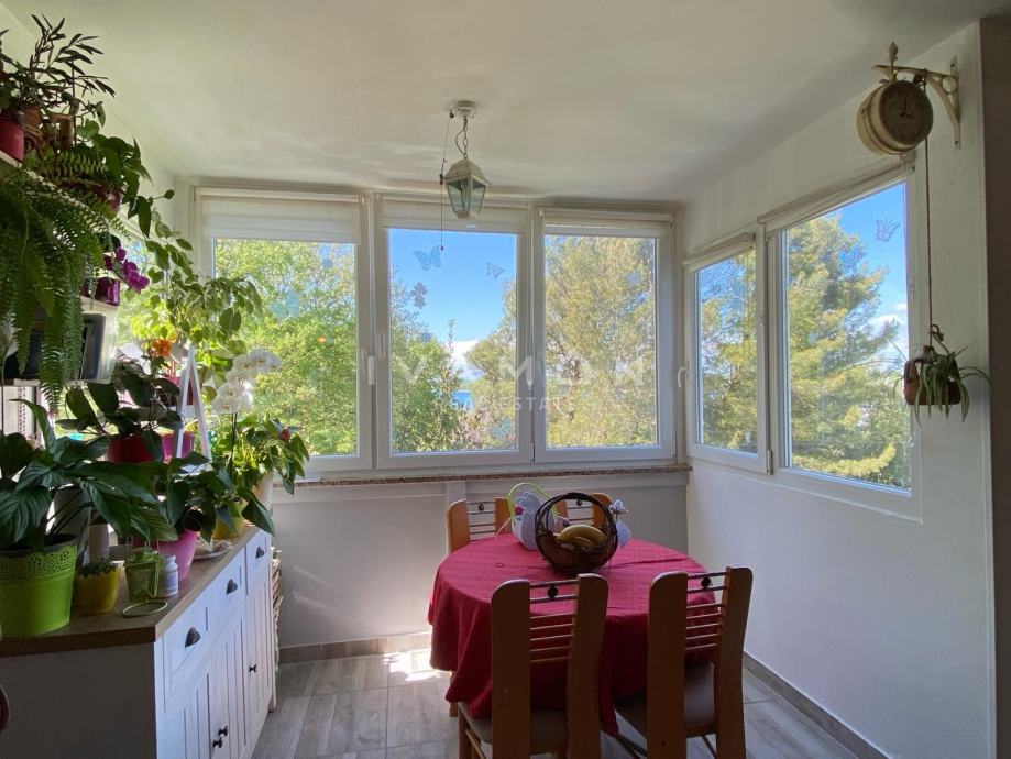 Iz svakog dijela stana se vidi more i zelenilo. Stan je renoviran 2000 g. i održavan je s velikom pažnjom. Grijanje je na peć na drva i klimu.