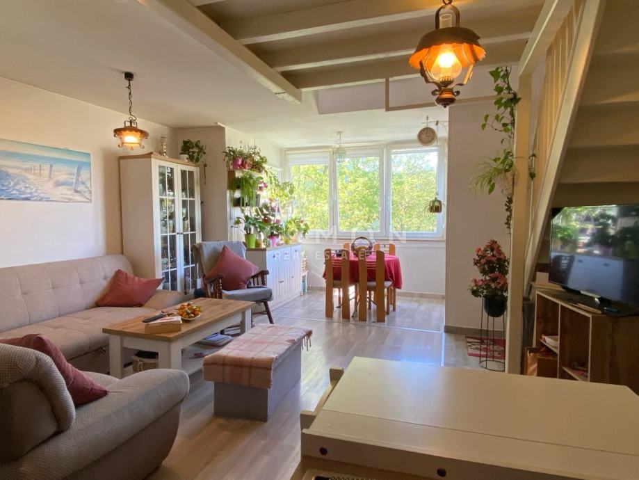 Stan je na drugom katu vrlo održavane i uredne zgrade. Na prvoj etaži je prostrani dnevni boravak sa kuhinjom i blagovaonicom te kupatilo.