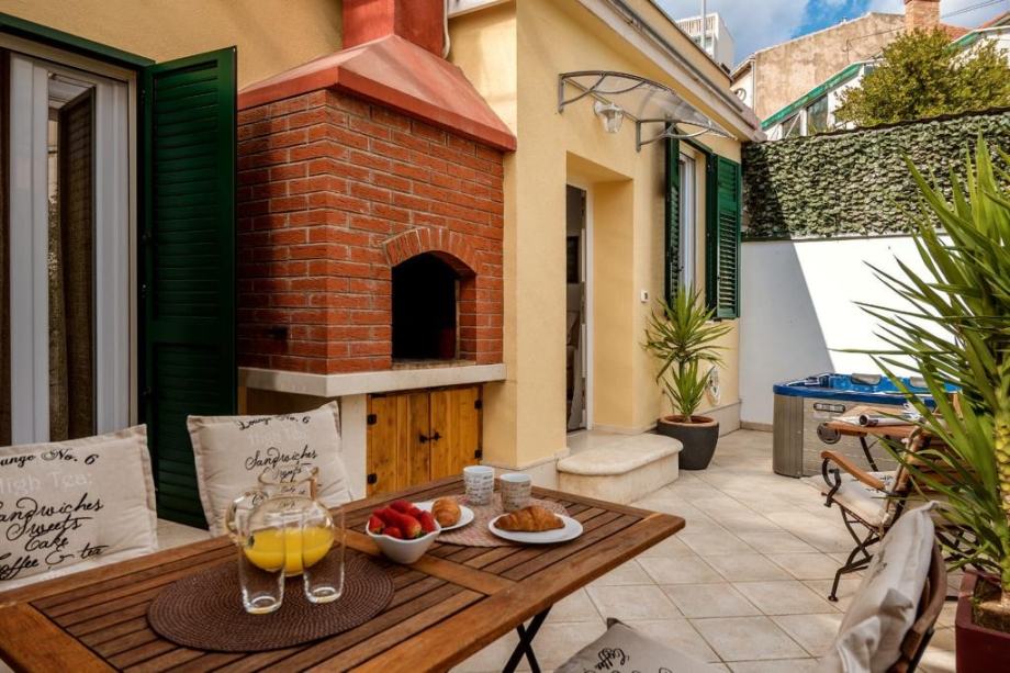 We are selling the most comfortable three-room apartment in the very center of Split, in an excellent location! It is located in the Spinuta area, just a few minutes' walk to the old town, Marmontova street and the river itself. This gem in such an exceptional location is a rarity on the real estate market. It is an object that has its own privacy and its own separate entrance. A luxurious apartment of 110 m2 consists of three large bedrooms, three bathrooms, a hallway, a kitchen with a spacious dining room and a living room that leads out to a garden rich in greenery, with a jacuzzi and a fireplace, as well as a garden table and chairs for outdoor enjoyment. Staying in this property, you feel as if you have traveled to an island, far from the noise of the city, but in fact you are in the very center of the city! The special feature of this property is extremely valuable and provides future Tenants with everything for a pleasant and comfortable life. It is rented for the period 01.11.-01.05. at a price of €2,500 per month. Three garage parking spaces are included in this price! For all additional information on CONTACT: 0915615115 (ZELJANA)