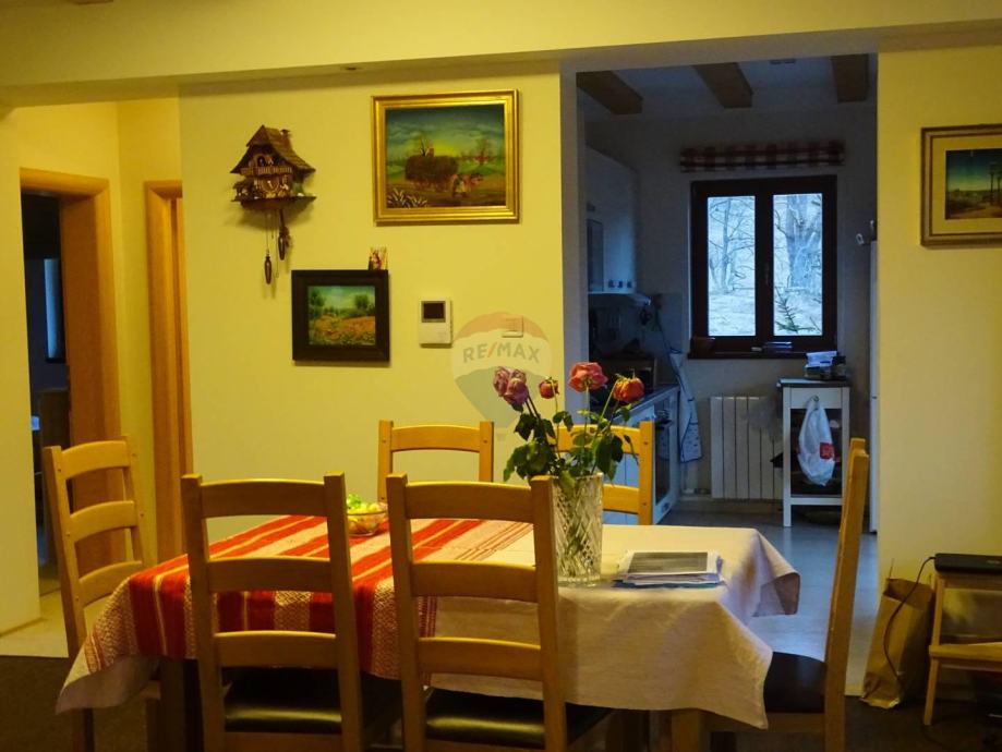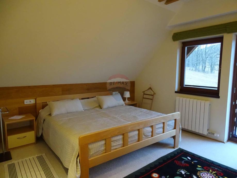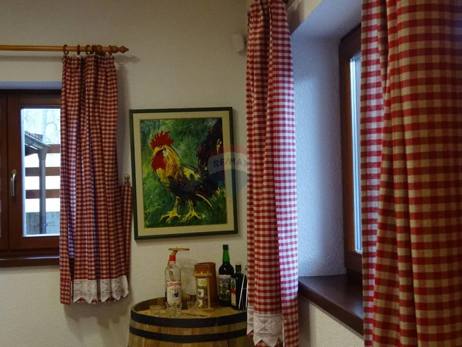 U malom Goranskom naselju,jednom od najviših smjestila se ova kuća.Opremljena sa svim elementima potrebnim za život i uživanje u prekrasnoj prirodi koja je okružuje.U prizemlju je smještena konoba sa otvorenim kaminom,kuhnjom,barom tušem te saunom.Unutarnje stepenice vode na kat gdje se nalazi prostran dnevni boravak u centru sa posebnim kaminom te kuhnjom,spavačom sobom te kupaonom.Na katu su tri spavače sobe sa kupaonom te jedan dio je radni prostor.Sve su prostorije pune svijetla.Uz kuću se nalazi bazen 30m2 sa zaštitnom kupolom u 4 segmenta,sa dizalicom topline.Cijela je okučnica ograđena dio i živom ogradom.Nekretnina vrijedna pažnje.