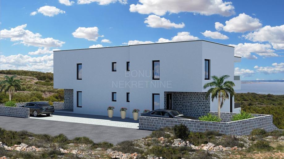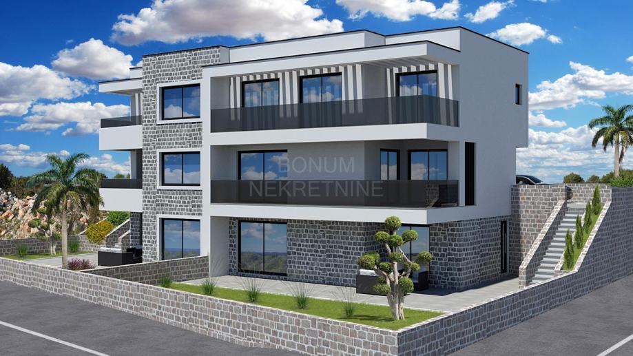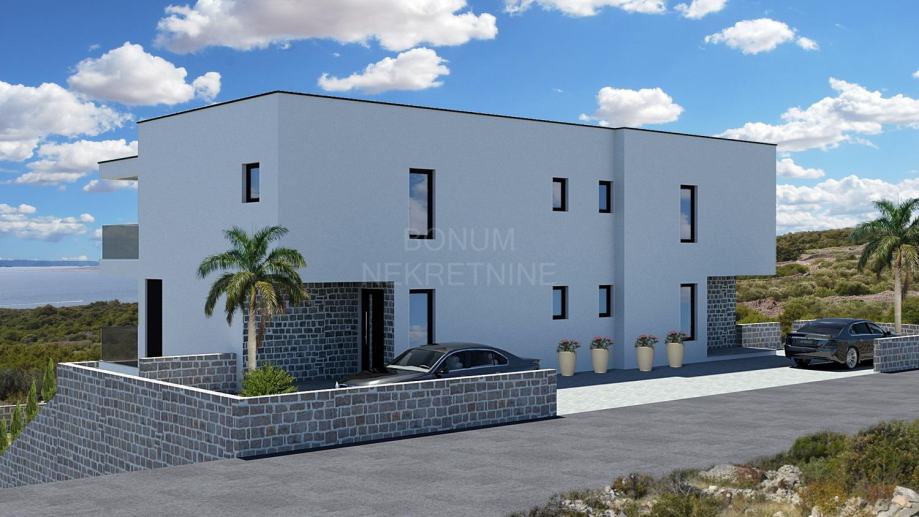 Prodaje se luksuzna dvojna kuća koja je trenutno u fazi izgradnje, s planiranim završetkom radova u 2025. godini, Vodice. Ova moderna nekretnina s tri etaže, svaka s prekrasnim pogledom na more, nudi funkcionalan dizajn. Na prvoj etaži nalazi se jednosoban apartman koji obuhvaća kuhinju, blagovaonicu i dnevni boravak otvorenog koncepta s izlazom na natkrivenu terasu, hodnik i kupaonicu. Također uključuje tehničku sobu/ostavu za dodatni prostor za skladištenje. Unutarnje stepenice vode na drugu etažu koja se sastoji od kuhinje, blagovaonice i dnevnog boravka također otvorenog koncepta s izlazom na natkrivenu terasu, kupaonice i hodnika, idealnog za obiteljska okupljanja i druženja uz prekrasan pogled na more. Stubište dalje vodi na treću etažu gdje se nalaze dvije prostrane spavaće sobe i dvije kupaonice, od kojih je jedna dio glavne spavaće sobe. Sve spavaće sobe imaju pristup prostranoj terasi, savršenoj za uživanje u pogledu i opuštanje. Dvorišni dio kuće bit će pažljivo hortikulturno uređen, s bazenom sa slanom vodom i automatikom, pružajući savršeno mjesto za opuštanje i uživanje u mediteranskoj klimi. Pri gradnji i opremanju koristit će se najmoderniji materijali i oprema kako bi se osigurala vrhunska kvaliteta, udobnost i energetska učinkovitost. U cijenu kuće je uključen PDV, pa budući vlasnik ne plaća porez na nekretnine.