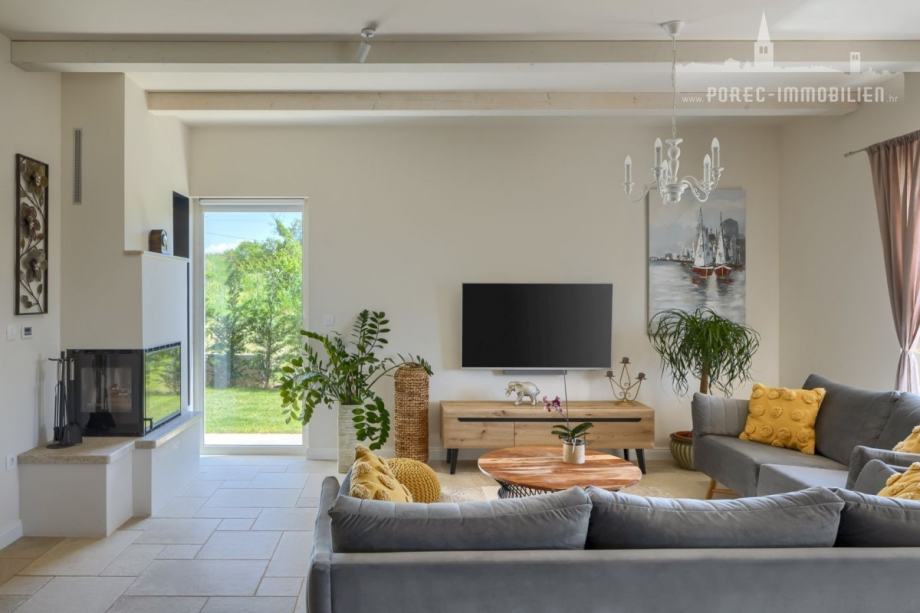 Grijanje je podno u cijeloj kući, u dnevnom boravku se nalazi kamin na drva, dok su ventilkonvektori postavljeni u svakoj prostoriji.