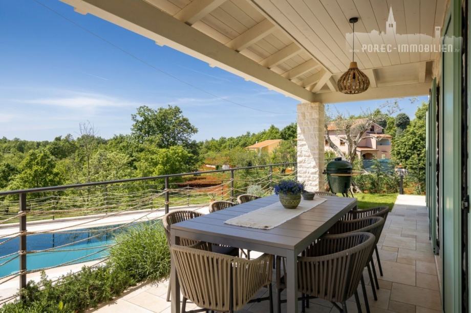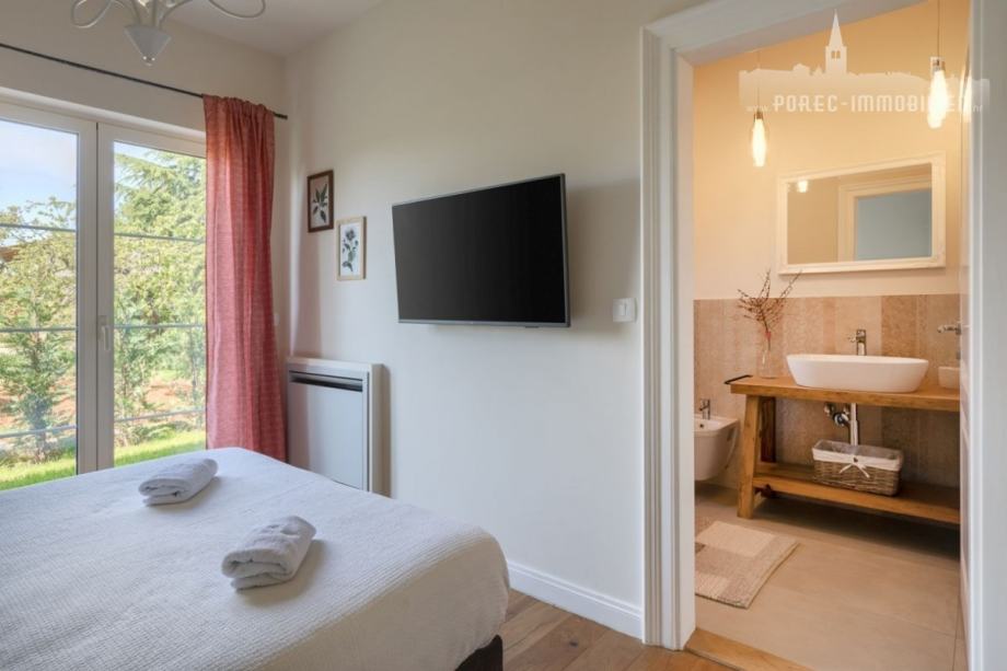 U centralnoj Istri, nedaleko pitoresknog mjesta Višnjan, na prodaji je prekrasna kamena vila od 170 m2, sa bazenom, 4 spavaće sobe i 4 kupaone.