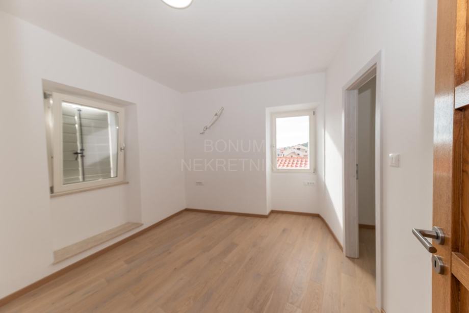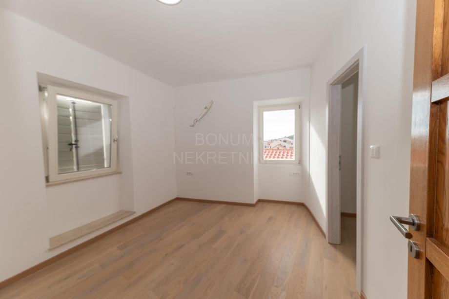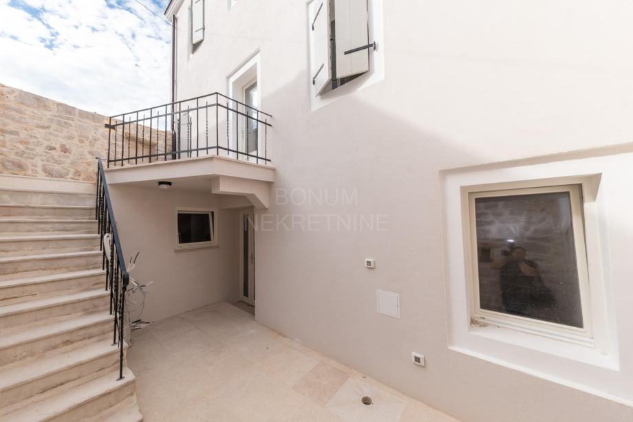 Nekretnina ukupne netto površine od 122 m² prostire se na tri etaže, a pripada joj i okućnica površine 21 m². Kuća sadrži dvije odvojene i potpuno funkcionalne stambene jedinice, što ju čini idealnom za veću obitelj, dvije generacije ili kao investiciju za turistički najam. U prizemlju se nalazi prvi stan zatvorene površine 37 m², kojem pripada i natkrivena terasa od 12,5 m², savršena za opuštanje u hladu. Na prvom i drugom katu smješten je dvoetažni stan ukupne površine 64 m² s terasom od 8,8 m², s koje se pruža pogled na more.