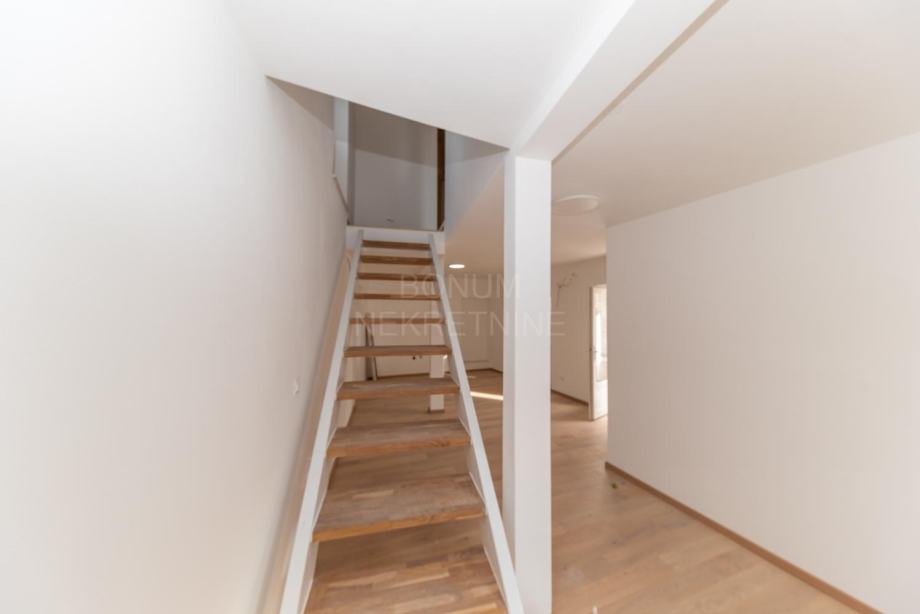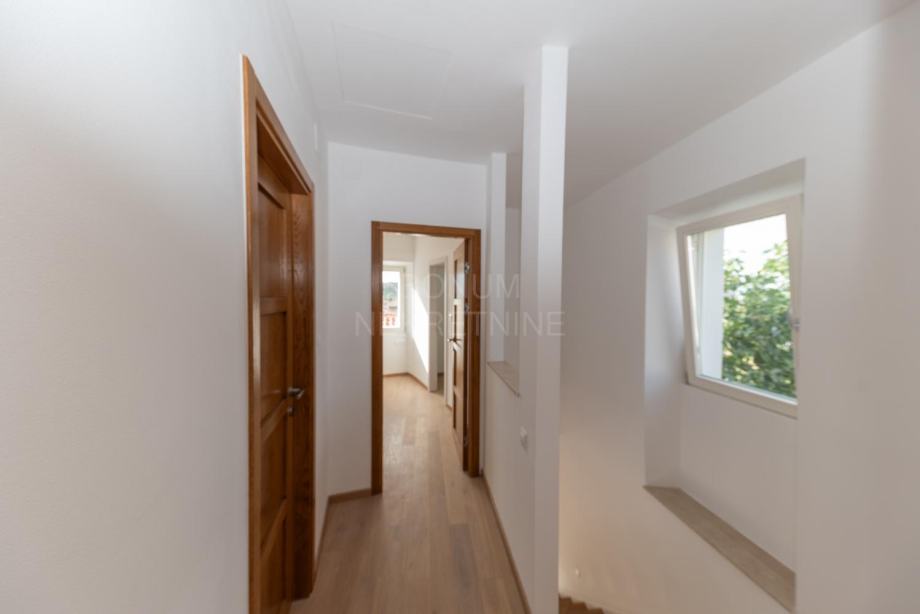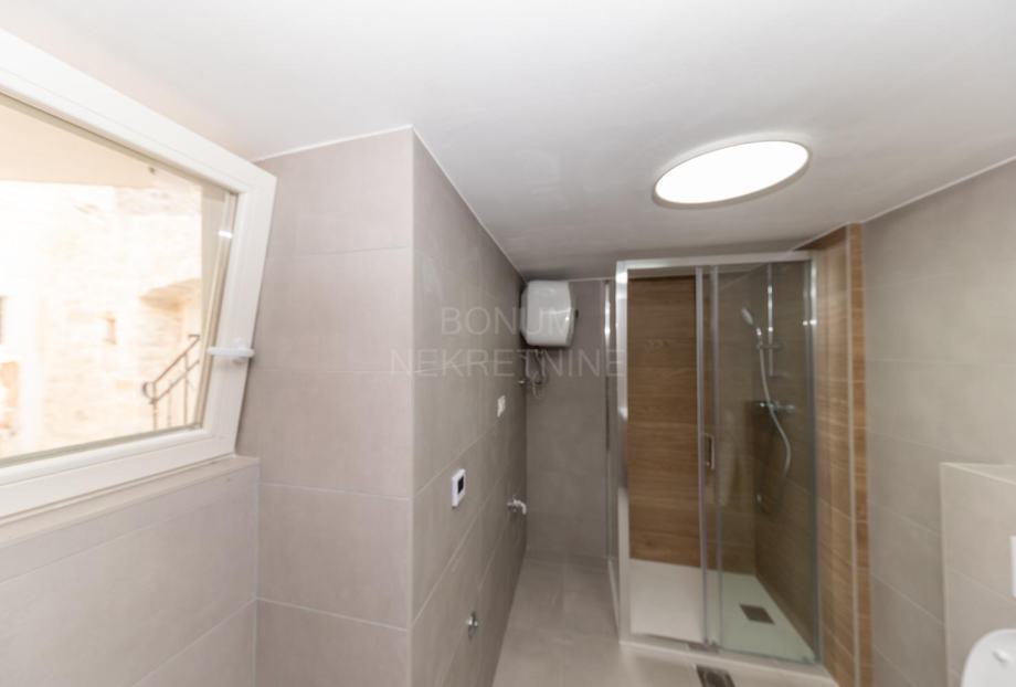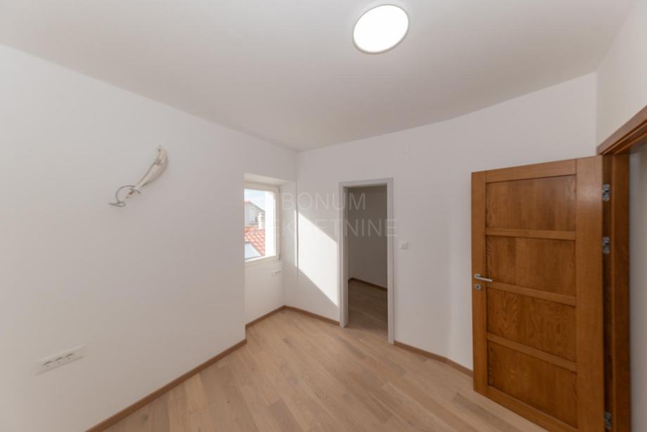 Nekretnina ukupne netto površine od 122 m² prostire se na tri etaže, a pripada joj i okućnica površine 21 m². Kuća sadrži dvije odvojene i potpuno funkcionalne stambene jedinice, što ju čini idealnom za veću obitelj, dvije generacije ili kao investiciju za turistički najam. U prizemlju se nalazi prvi stan zatvorene površine 37 m², kojem pripada i natkrivena terasa od 12,5 m², savršena za opuštanje u hladu. Na prvom i drugom katu smješten je dvoetažni stan ukupne površine 64 m² s terasom od 8,8 m², s koje se pruža pogled na more.