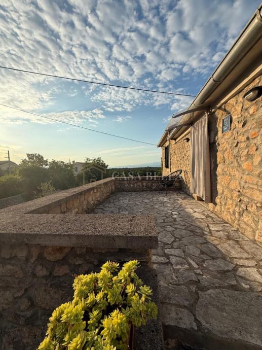 Kuća je smještena u mirnom okruženju okruženom zelenilom, nedaleko od centra Malinske i mora, te nudi potpunu privatnost i ugodan mediteranski ambijent. Ukupne stambene površine od 100 m², prostire se na dvije etaže koje su povezane funkcionalnim rasporedom.