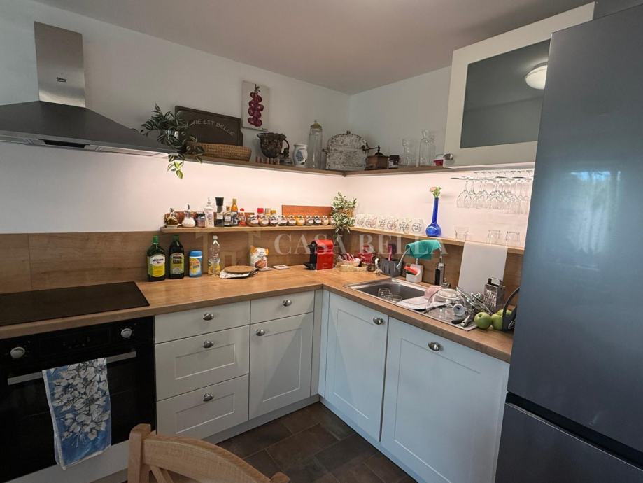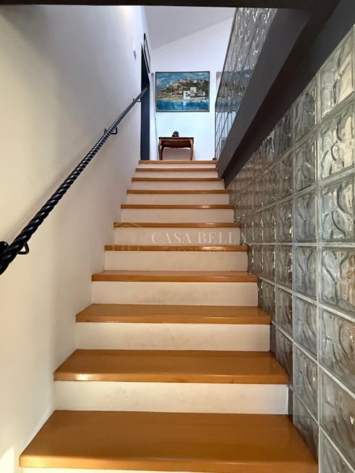 U prizemlju se nalazi prostrani dnevni boravak, kuhinja i blagovaonica, dok se na katu nalaze dvije spavaće sobe, veliko predsoblje sa sofom na razvlačenje, kupaonica i terasa s prekrasnim pogledom na more. Kuća ima tri zasebna ulaza, što je čini idealnom za boravak više obitelji ili gostiju.