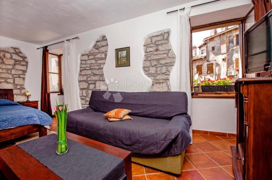 Interijer kuće krase prekrasna drvena hrastova vrata i kombinacija kamena i drva, koja stvaraju profinjeni, autentični mediteranski ambijent. Svaki stan pruža ugodnu atmosferu i optimalno iskorištava prostor.