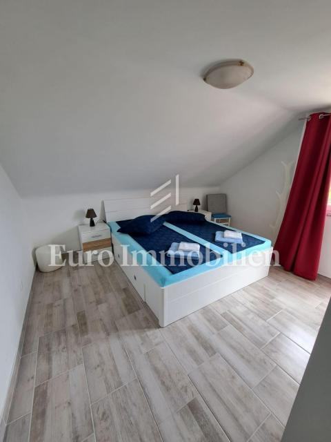 Kuća se sastoji od dva jednosobna stana u prizemlju te jednog dvosobnog stana na prvom katu i jednog dvosobnog stana na drugom katu. Jedan od jednosobnih stanova je u roh bau fazi i potrebna mu je adaptacija. Dvosobni stanovi su kategorizirani s 4* i koriste se u funkciji turizma. Kuća ima sedam terasa, četiri balkona, prekrasnu uređenu okućnicu s čak dva vanjska roštilja i prekasnim pogledom na Senj. Odlična prilika za ovakvu nekretninu koja je rijetkost na tržištu.