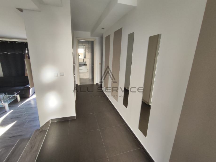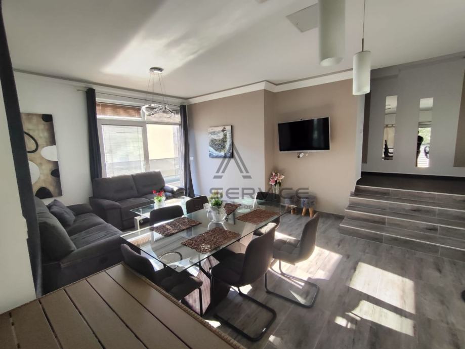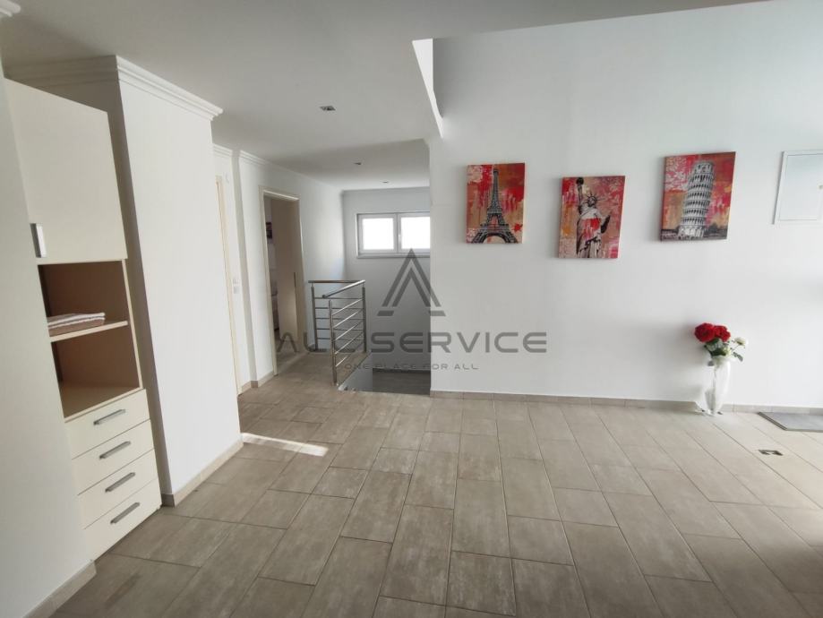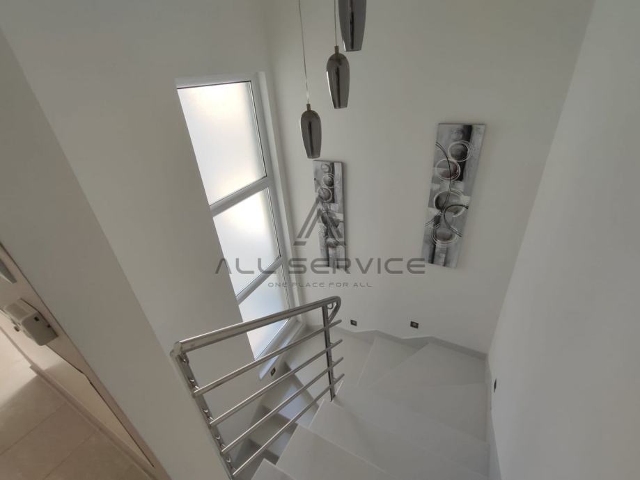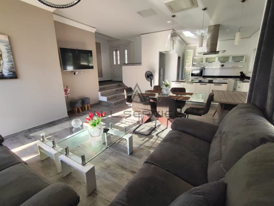 Kuća se sastoji od prostranog dnevnog boravka sa kuhinjom, 4 spavaće sobe,3 kupaone sa wc-om i tušem i kadom, sobe za pranje rublja, prostrane garaže, 3 balkona, dvorišta sa bazenom i roštiljem.