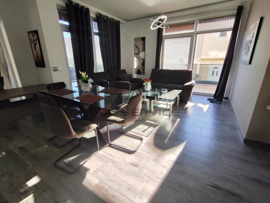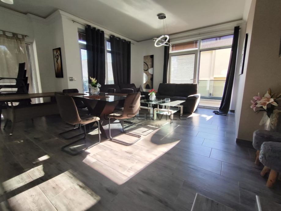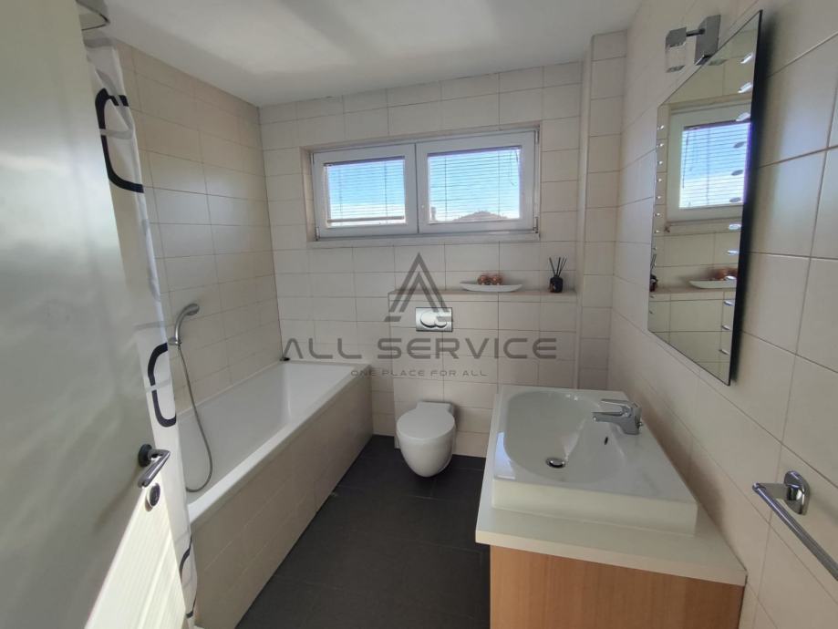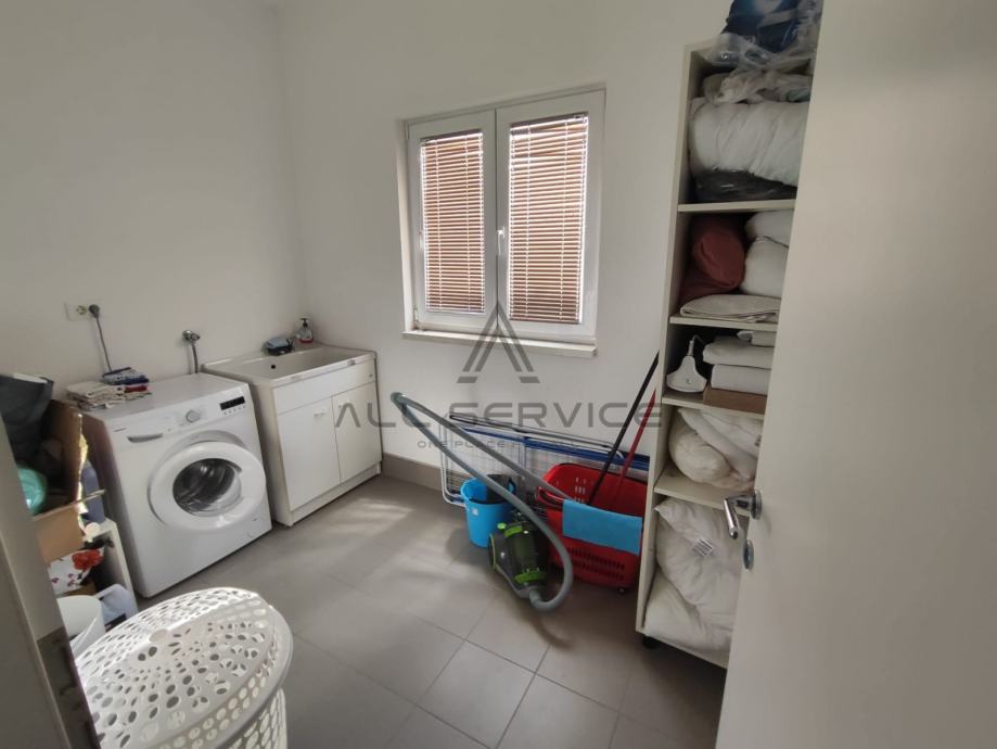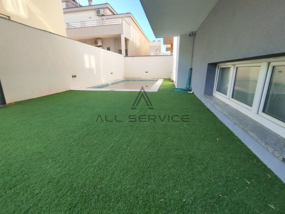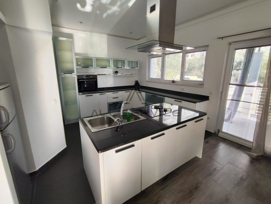 Kuća se sastoji od prostranog dnevnog boravka sa kuhinjom, 4 spavaće sobe,3 kupaone sa wc-om i tušem i kadom, sobe za pranje rublja, prostrane garaže, 3 balkona, dvorišta sa bazenom i roštiljem.
