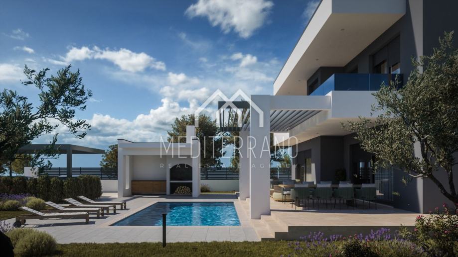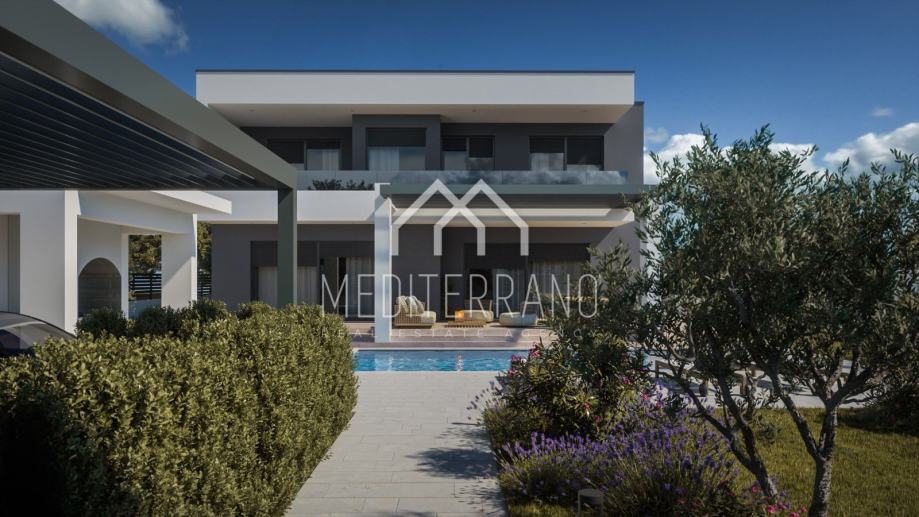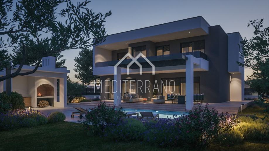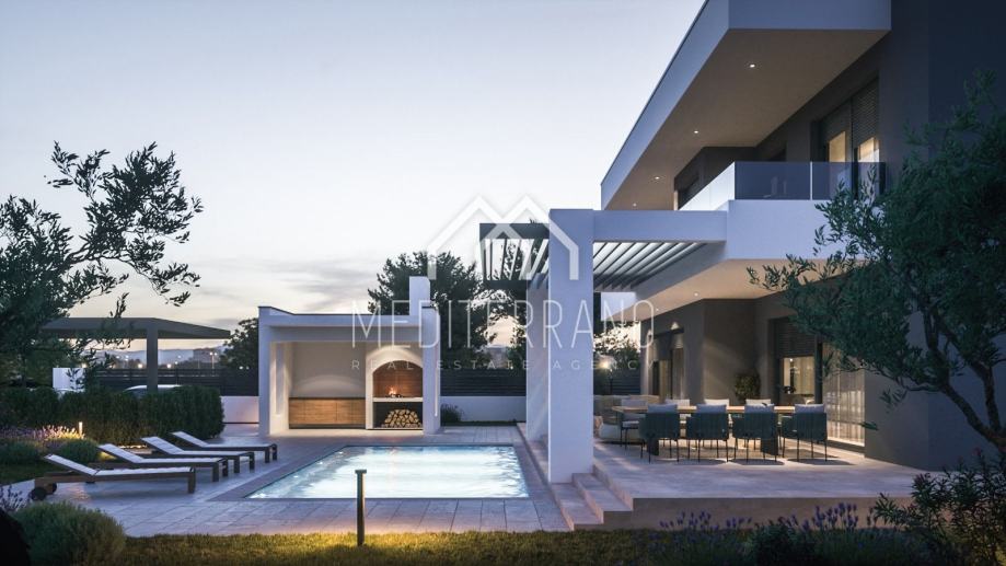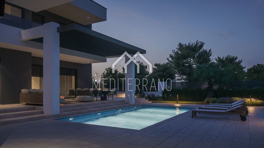Kuća se proteže na dvije etaže i ukupno nudi 4 spavaće sobe, 3 kupaonice, dodatni WC, prostrani dnevni boravak, kuhinju s blagovaonicom te velike terase idealne za opuštanje i druženje. U dvorištu se nalazi bazen površine 30 m², koji upotpunjuje dojam privatne oaze.