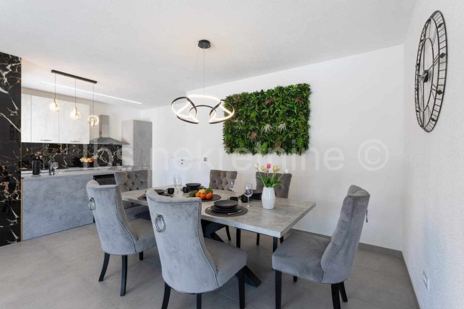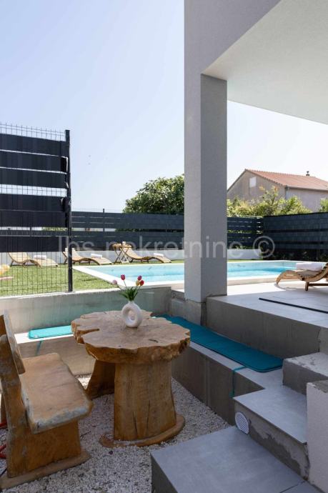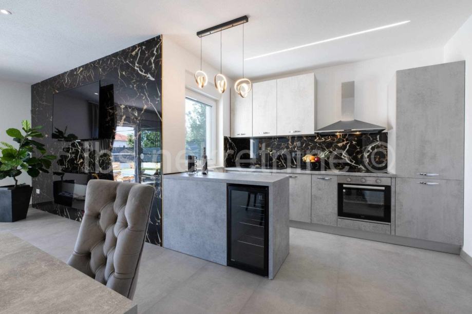 Između Splita i Trogira u Kaštel Novom posredujemo u prodaji prekrasnu samostojeću modernu kuću s bazenom.