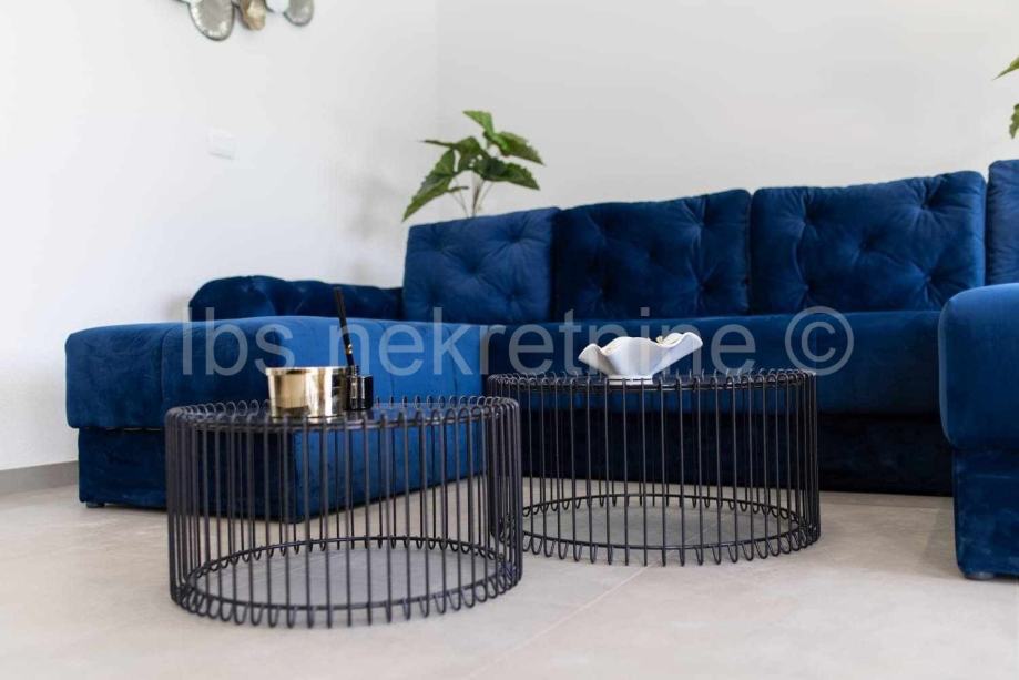 U prizemlju se nalazi kuhinja i blagovaona sa dnevnim boravkom, tri spavaće soba, kupaonica i wc.